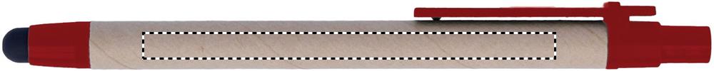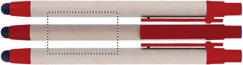 Taaskasutatud kartongist silindri ja ABS-otsa ning klambriga valmistatud kuulpliiats. Sinine tint, täidis ja pehme puutetundlik ots.