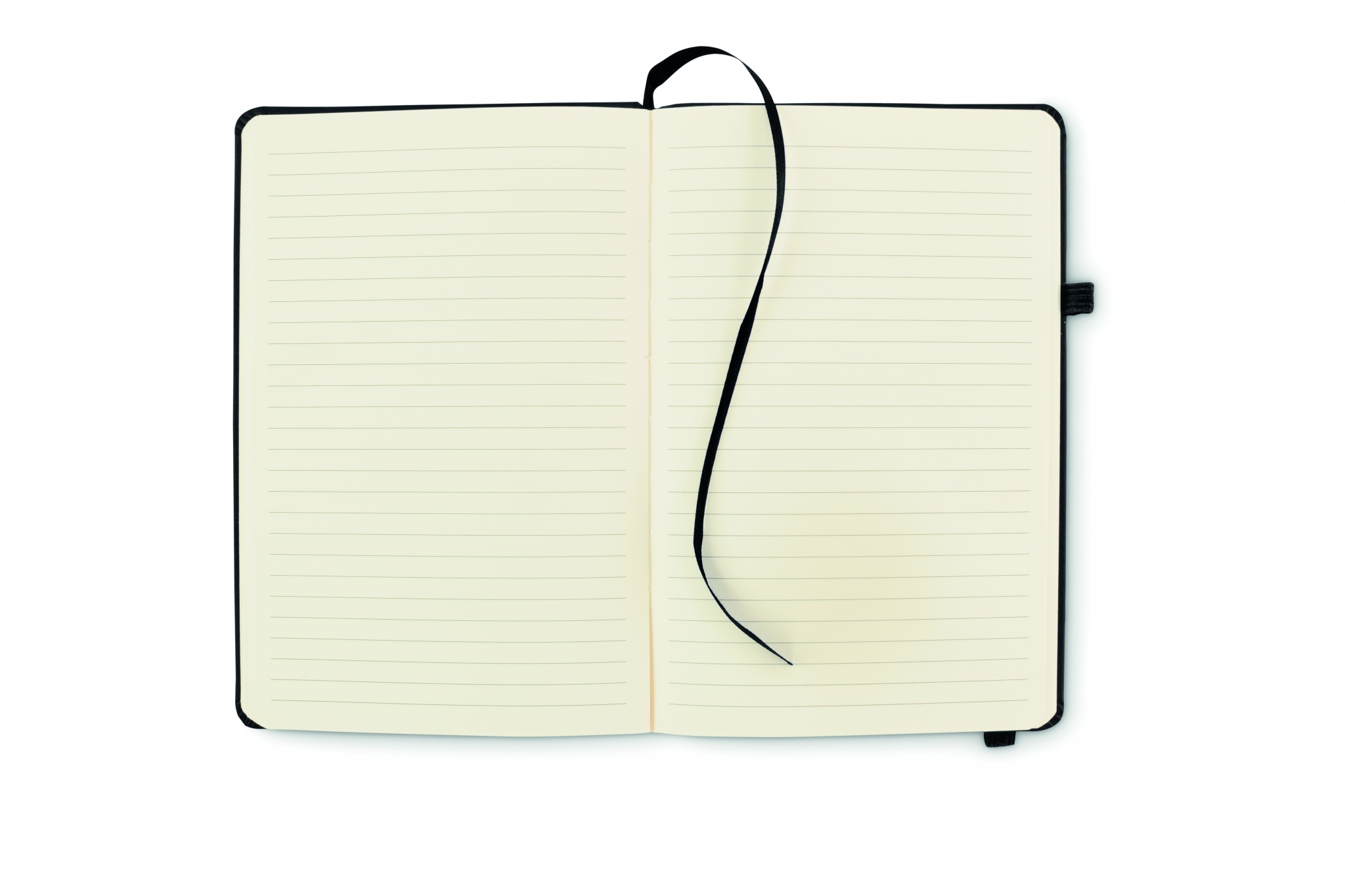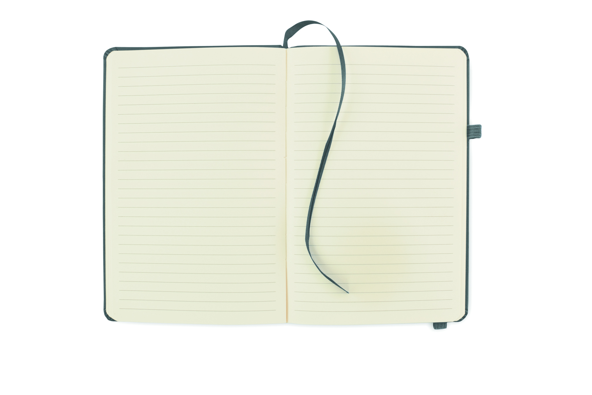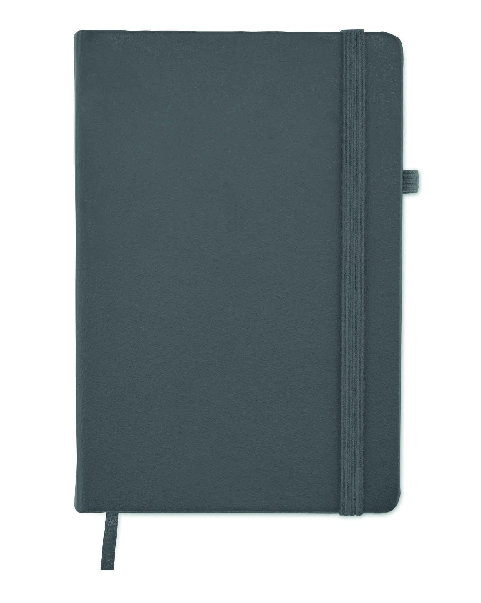 A5-formaadis sülearvuti 70% taaskasutatud nahast ja 30% lateksist PU kaanega. Casebound. 192 joonega lehekülge taaskasutatud paber (96 lehte). Sobiv elastne sulgemisrihm ja pliiatsihoidja.