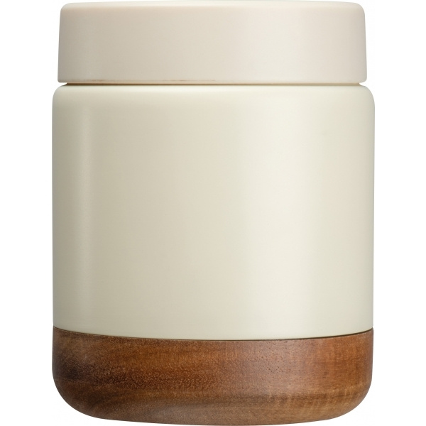 Taaskasutatud roostevabast terasest kaheseinaline toidutermos. Sellel on akaatsiapuuga keeratav kaas ja kandesang. Mahutavus 400 ml.