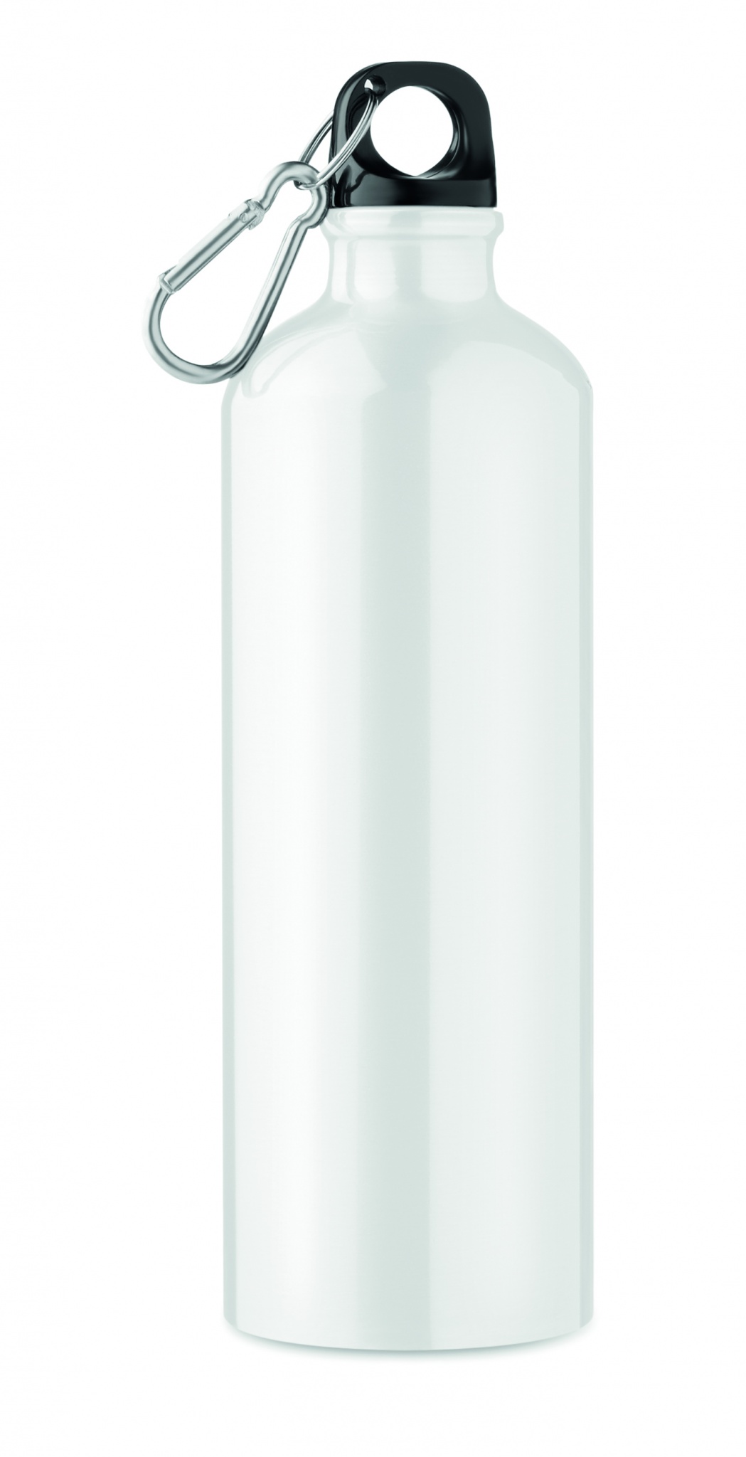 Ühekordse seinaga 750 ml alumiiniumist pudel koos karabiiniga, kohandatava trükilahendusega, Valge