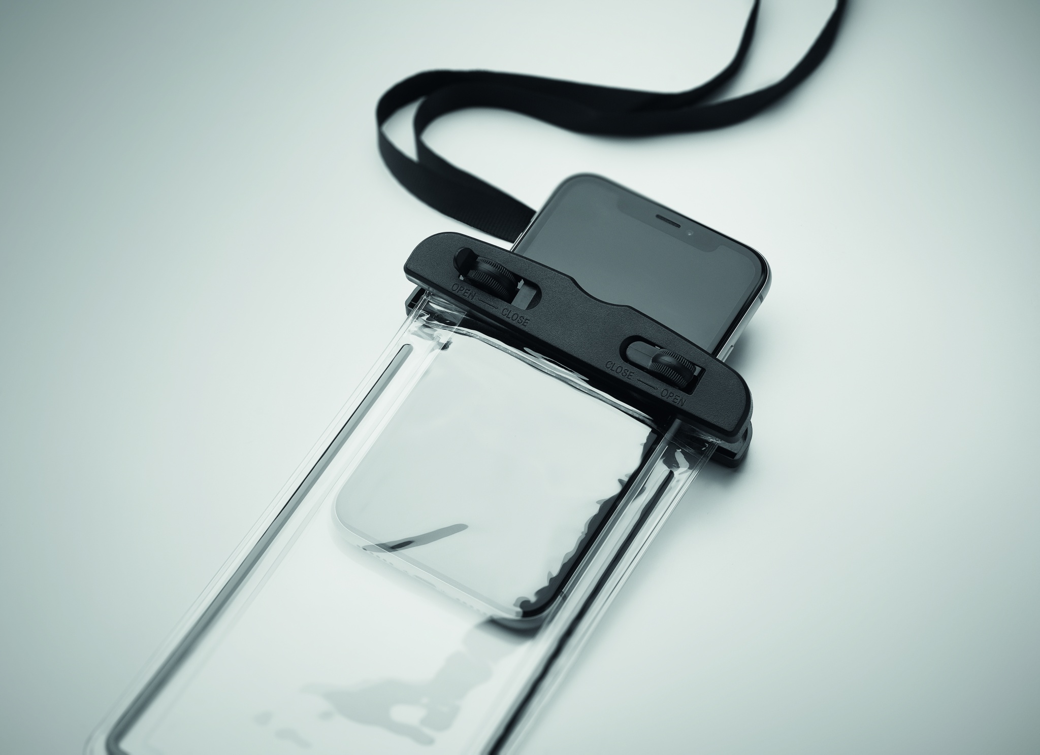 Veekindel telefonikott reguleeritava ja eemaldatava kaelapaelaga. Veekindlus: IPX 6. Sobib kuni 6,7-tollise ekraaniga telefonidele.