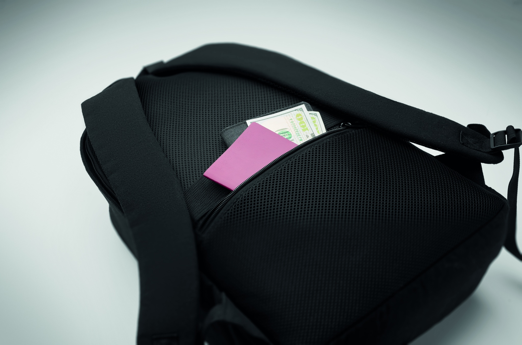 15 tuuman kannettava reppu kierrätetystä esikulutetusta puuvillasta ja kierrätetystä polyesteristä (70 %/30 %). Siinä on vetoketjullinen etutasku, vetoketjullinen tasku takapuolella. Pehmeästi pehmustetut selkä- ja olkahihnat. Trolleypidike kääntöpuolella.