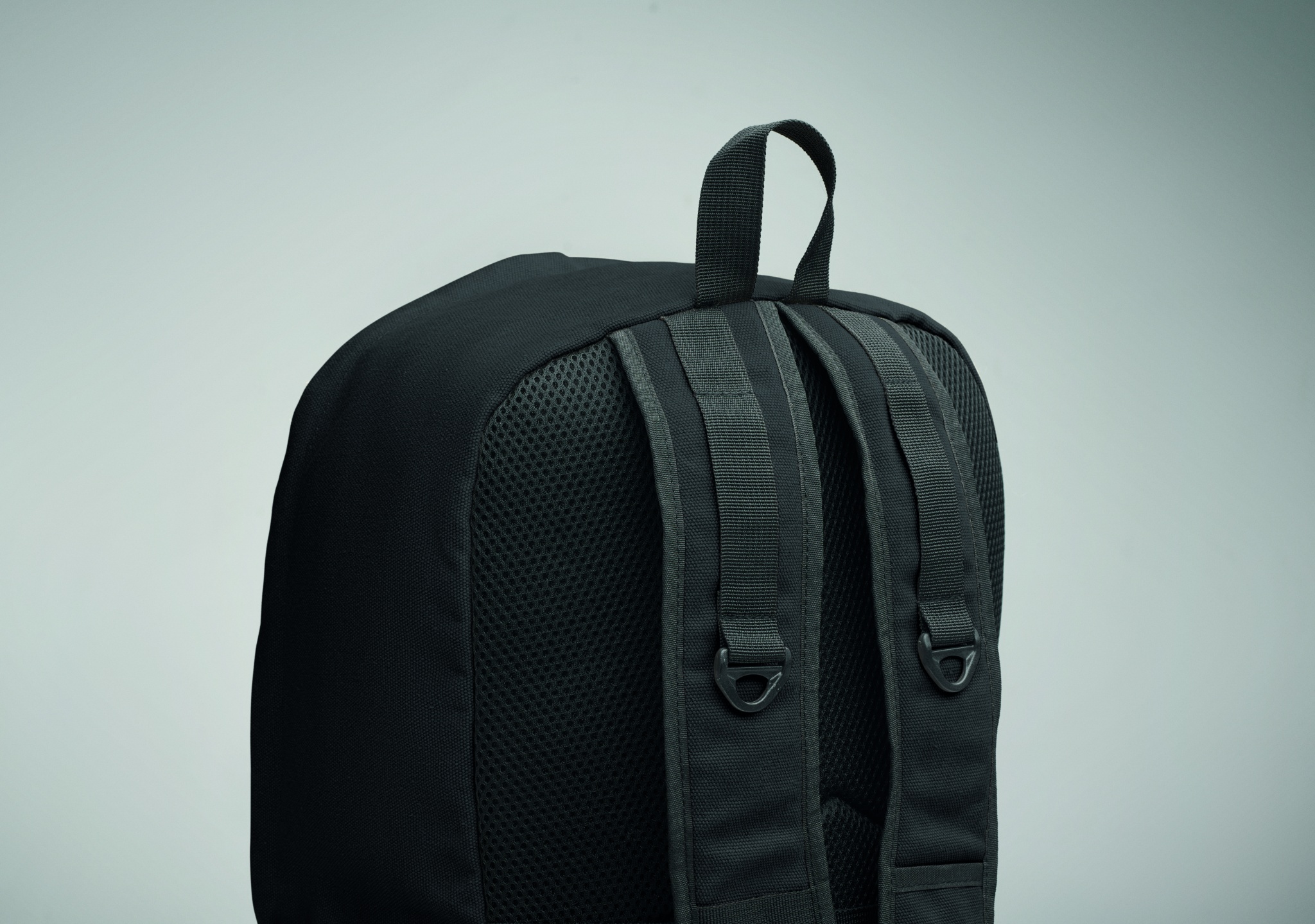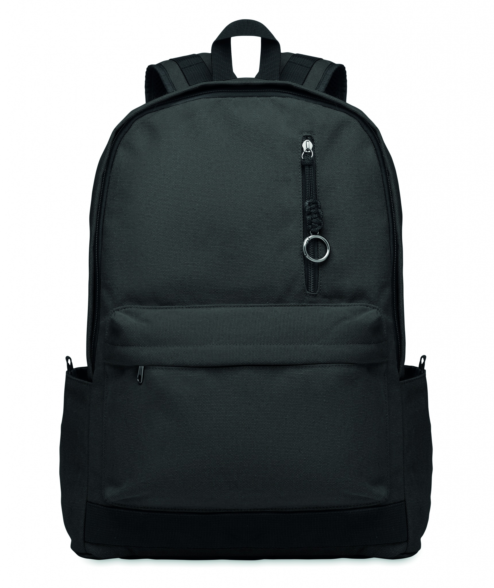 15 tuuman kannettava reppu kierrätetystä esikulutetusta puuvillasta mukautettavalla painatuksella, Musta