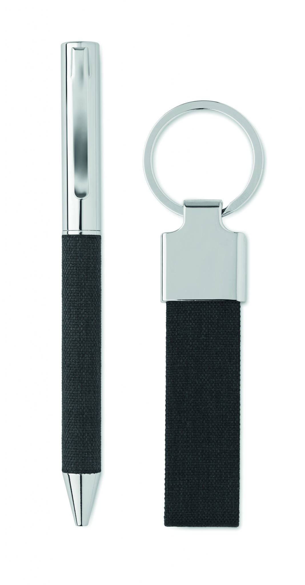 2-osainen lahjasetti lahjapakkauksessa. Sisältää metallisen kierrekuulakärkikynän, jossa on RPET-polyesteristä valmistettu yksityiskohta, ja RPET-polyesteristä valmistetun avaimenperän. Sininen muste.