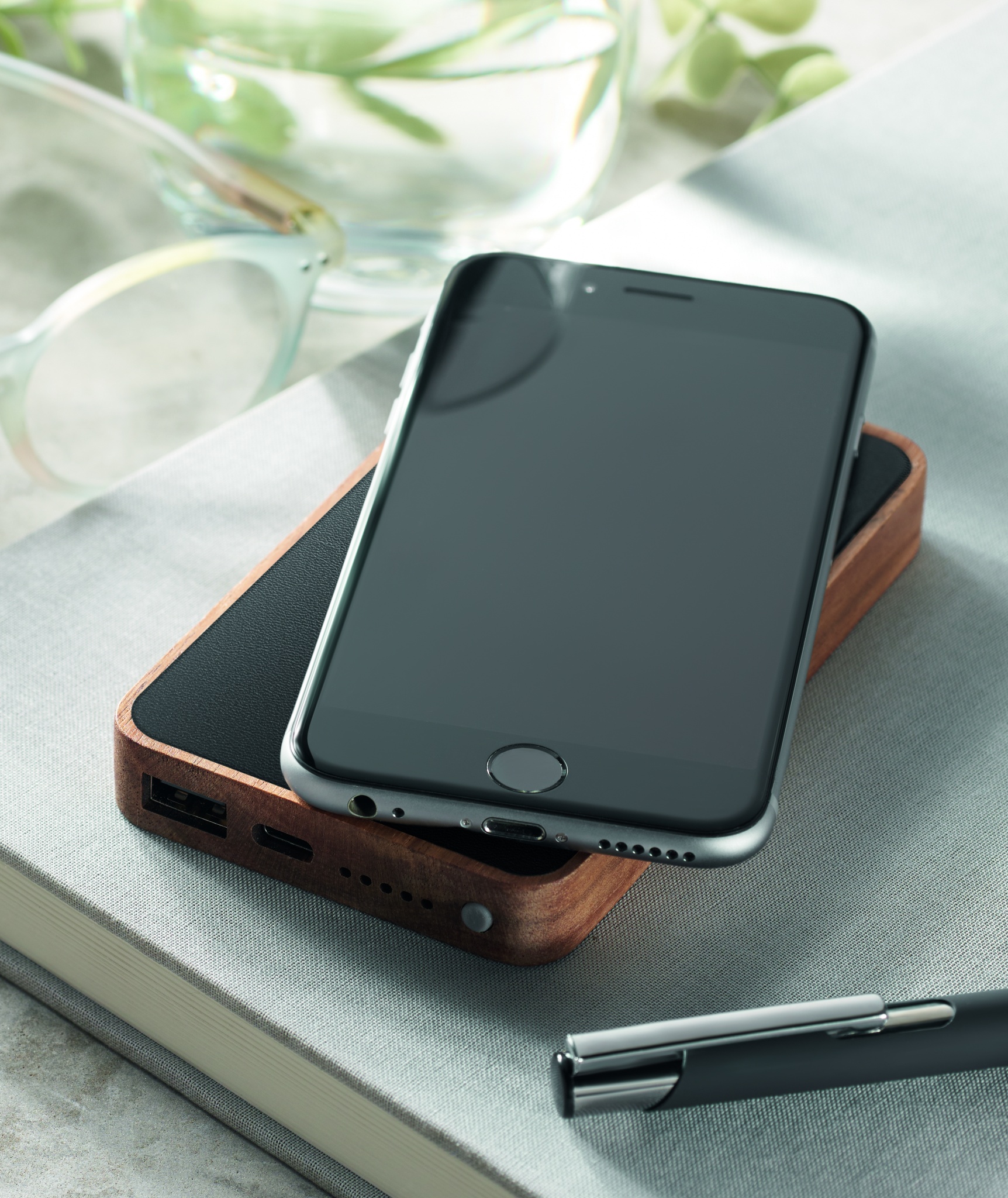 15W langaton lataus ja 4000mAh varavirtalähde, jonka kotelo on akaasiapuuta ja kierrätettyä PU:ta. Tukee pikalataustekniikkaa (20W). Sisään/ulos: Type-C.