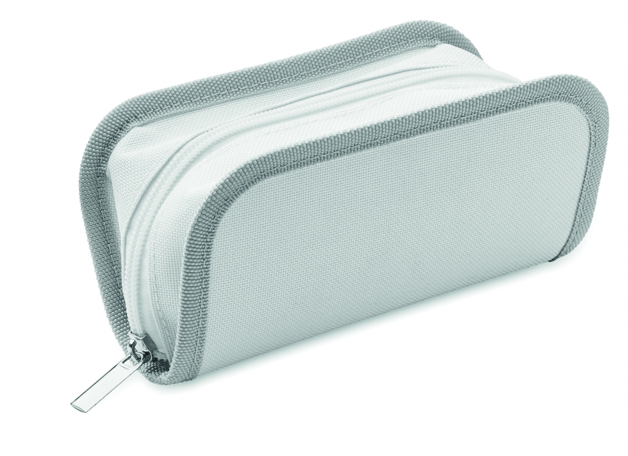 6-osainen vauvanhoitosetti. Sisältää: hellävarainen hoitoharja, vauvakampa, nenäimuri, kynsiviila, kynsisakset ja sakset. Toimitetaan 600D-polyesterilaukussa.