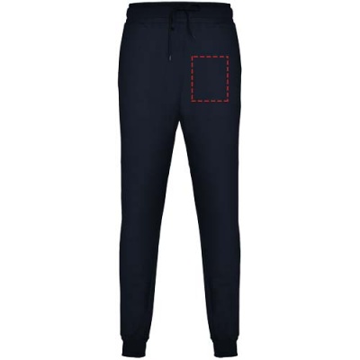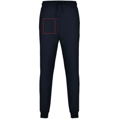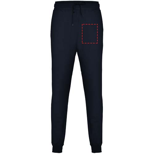 Urheiluhousut, joissa leveä säädettävä vyötärönauha, kiristysnyöri, tyköistuvat lahkeiden suut, vahvistetut saumat, uurretut sivutaskut ja tikattu kulmatasku. Irrotettava etiketti.