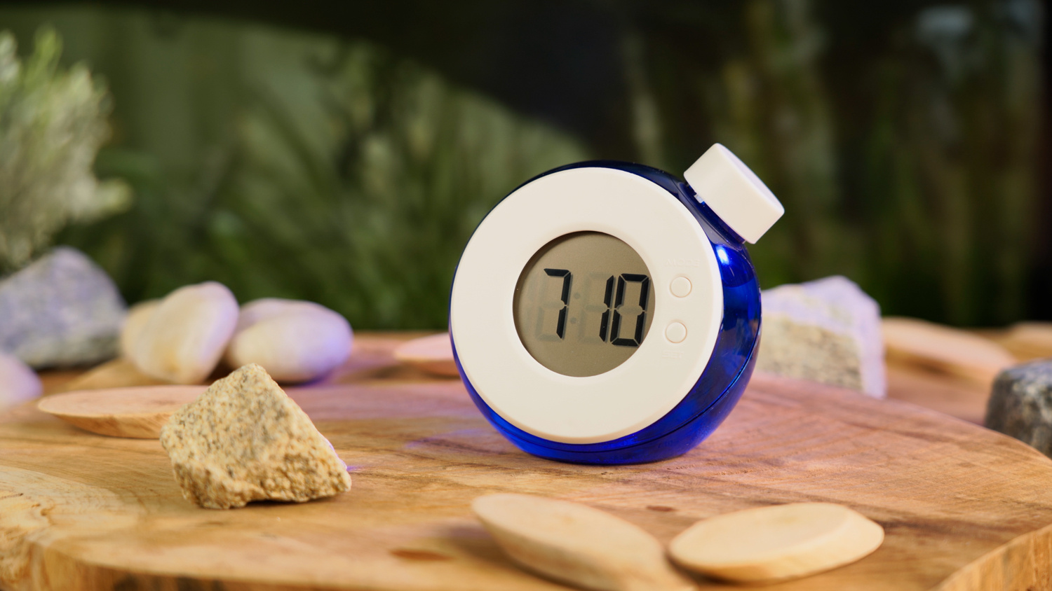 Tämä vesikello ei vaadi paristoa ollenkaan. Niin kauan kuin kellon takana oleva pullo on täynnä vettä, kellonaika ja päivämäärä voidaan näyttää selkeästi. Yksi täyttö voi kestää useita viikkoja. Sähkön lähde tuottaa vettä, joka käynnistää sisäiset kemialliset reaktiot. Kellon täyttämiseen käytettävään veteen tulee lisätä 2-3g suolaa.