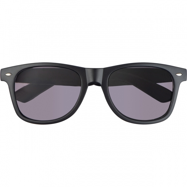 Mustat, klassiset aurinkolasit UV 400 -suojalla, suodatinluokka 3, laadukas muovikehys ja korkkimaiset sangat. Logosi painetaan ripustimeen.