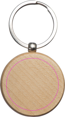 Pyöreä pyökkipuinen avaimenperä avainrenkaalla. Laserkaiverruksen avulla logosi tulee ihanteellisesti esiin.