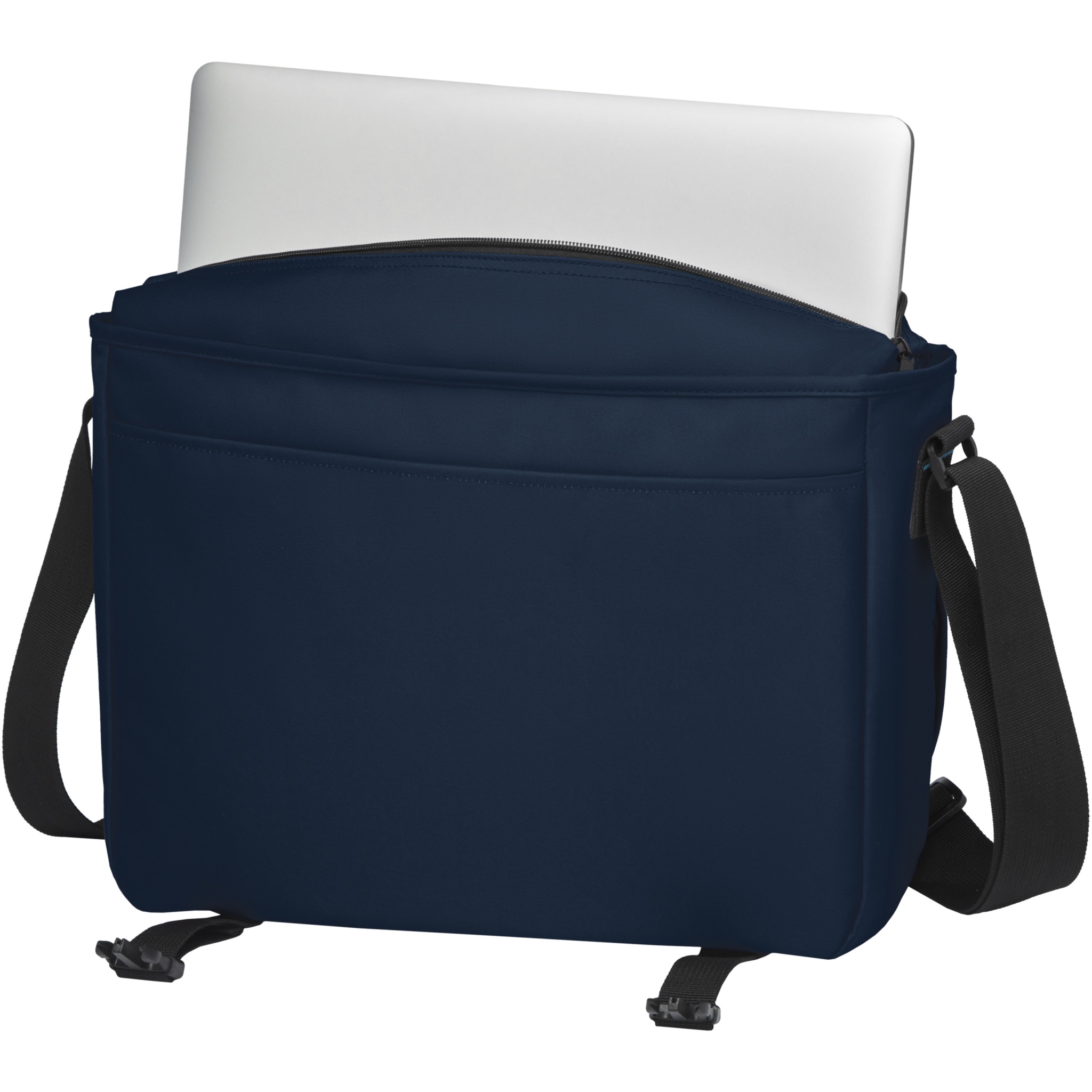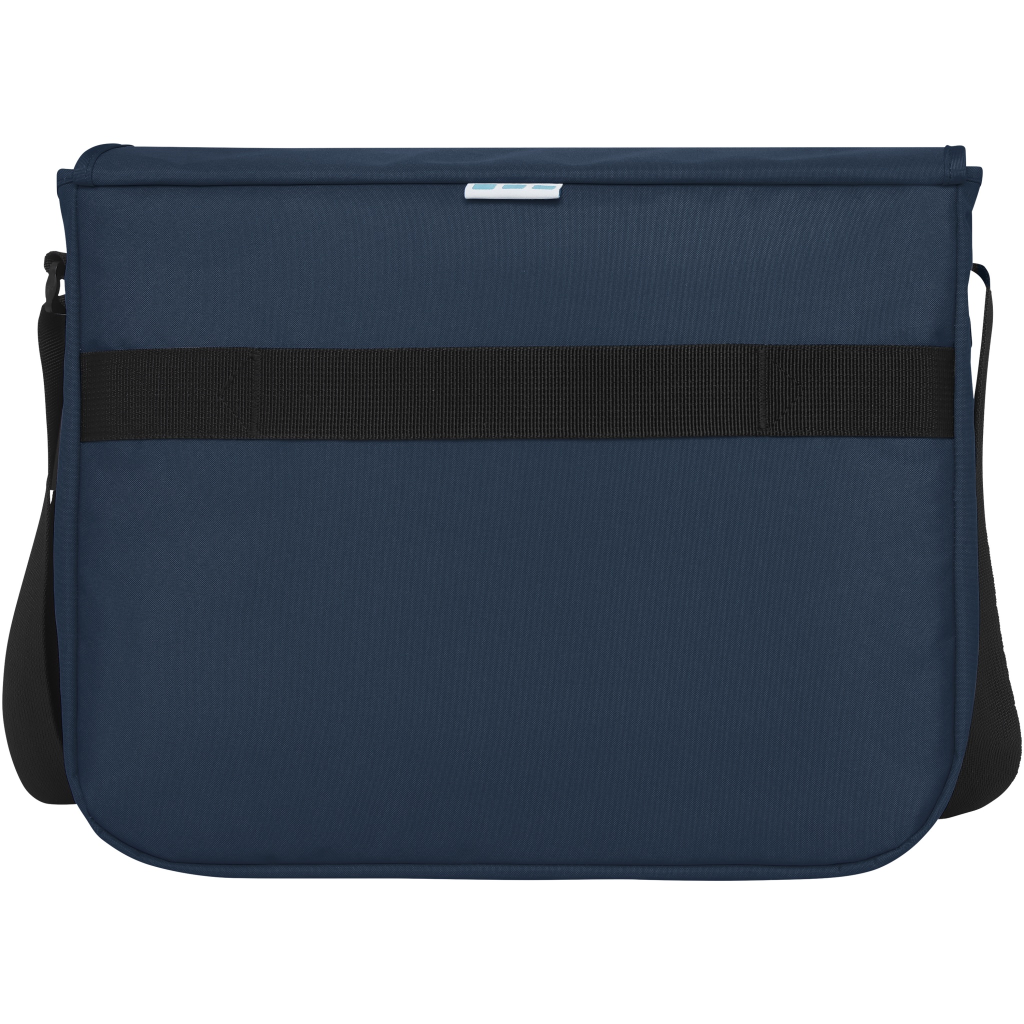 Kestävä, GRS-sertifioitu RPET-laukku kannettavalle, joka on valmistettu 60-prosenttisesti kierrätysmateriaaleista. Suuri vetoketjullinen päälokero, jossa on pehmustettu 15”:n kannettavan tietokoneen suojatasku ja etulokero (kummassakin tarranauhakiinnitykset). Mukana peiteläppä, jossa vetoketjullinen tasku ja solki. Takana on mukava pehmustettu ja säädettävä olkahihna ja vetokahvatunneli.