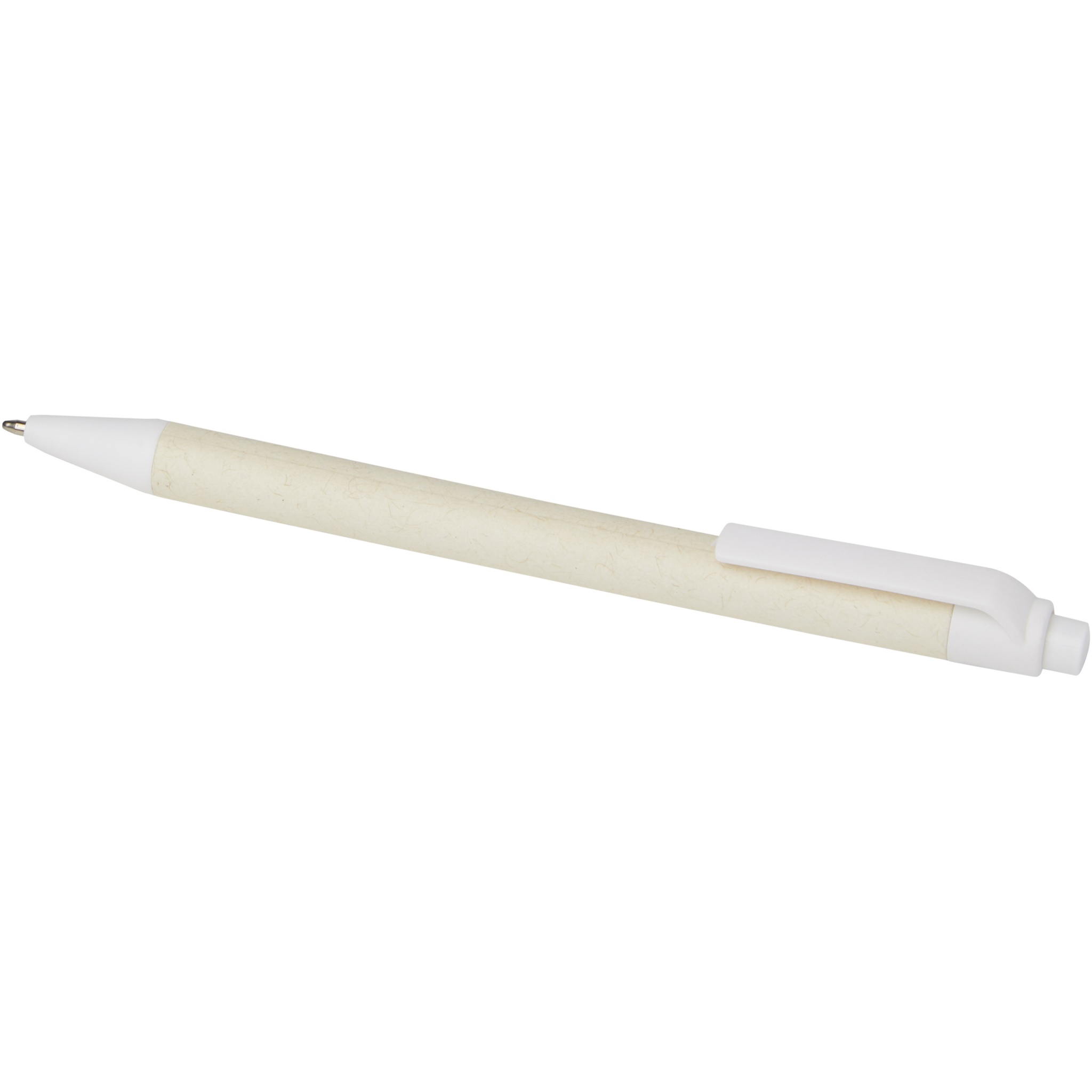 Kuulakärkikynä napsautusmekanismilla ja kierrätetyistä maitotölkeistä valmistetulla varrella (jopa 70 %). Painike, klipsi ja kärki ovat valmistettu PLA-muovista. Käytetyt maitotölkit kerätään, lajitellaan, käsitellään ja muutetaan paperiksi, jolloin jäte todella pääsee hyötykäyttöön.
