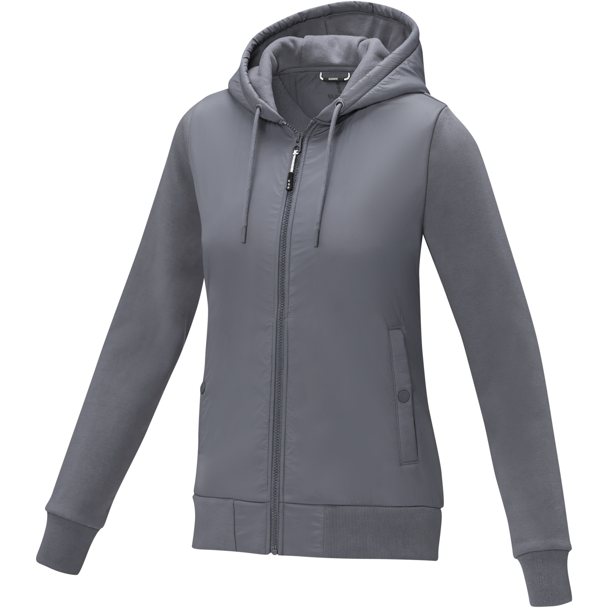 Darnell naisten hybriditakki - täydellinen yhdistelmä tyyliä ja toiminnallisuutta. Yksityiskohdat 38 g/m² dull cire 380T nylon-kudottua kangasta, joka takaa kestävyyden ja kevyen tuntuman. Materiaali on puuvillaa ja polyesteriä sisältävää neulosta (345 g/m²), joka tarjoaa mukavuutta ja liikkumisen helppoutta. Takin sisäpuoli on harjattu ja pehmeän tuntuinen. Sisätaskussa voit säilyttää välttämättömät tavarat. Resorit takaavat mukavan istuvuuden. Darnell-hybriditakki on täydellinen valinta rentoihin tilaisuuksiin. Muotoonleikattu naisille.