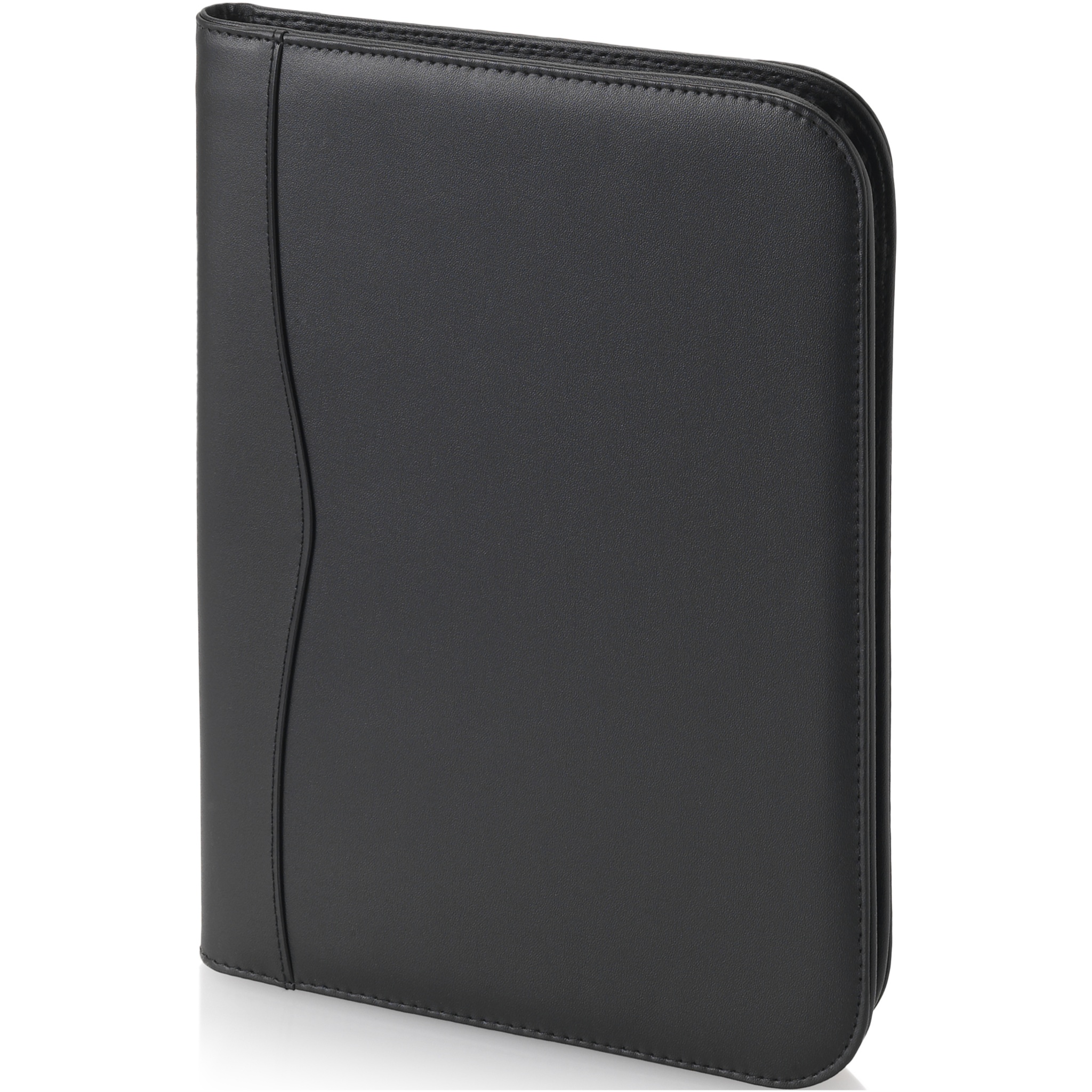 A4-kokoisessa Ebony -kansioissa on kätevä lokero sekä vetoketjutasku asiakirjojen säilyttämistä varten. Tämän lisäksi siinä on 20-sivuinen viivallinen muistilehtiö sekä kynälenkki (kynä ja tarvikkeet eivät sisälly toimitukseen). Sulje kansio vetoketjulla, jotta sisältö pysyy siistinä ja hyvin suojattuna. Salkku on valmistettu kestävästä keinonahasta, ja siinä on runsaasti tilaa suurille logoille.