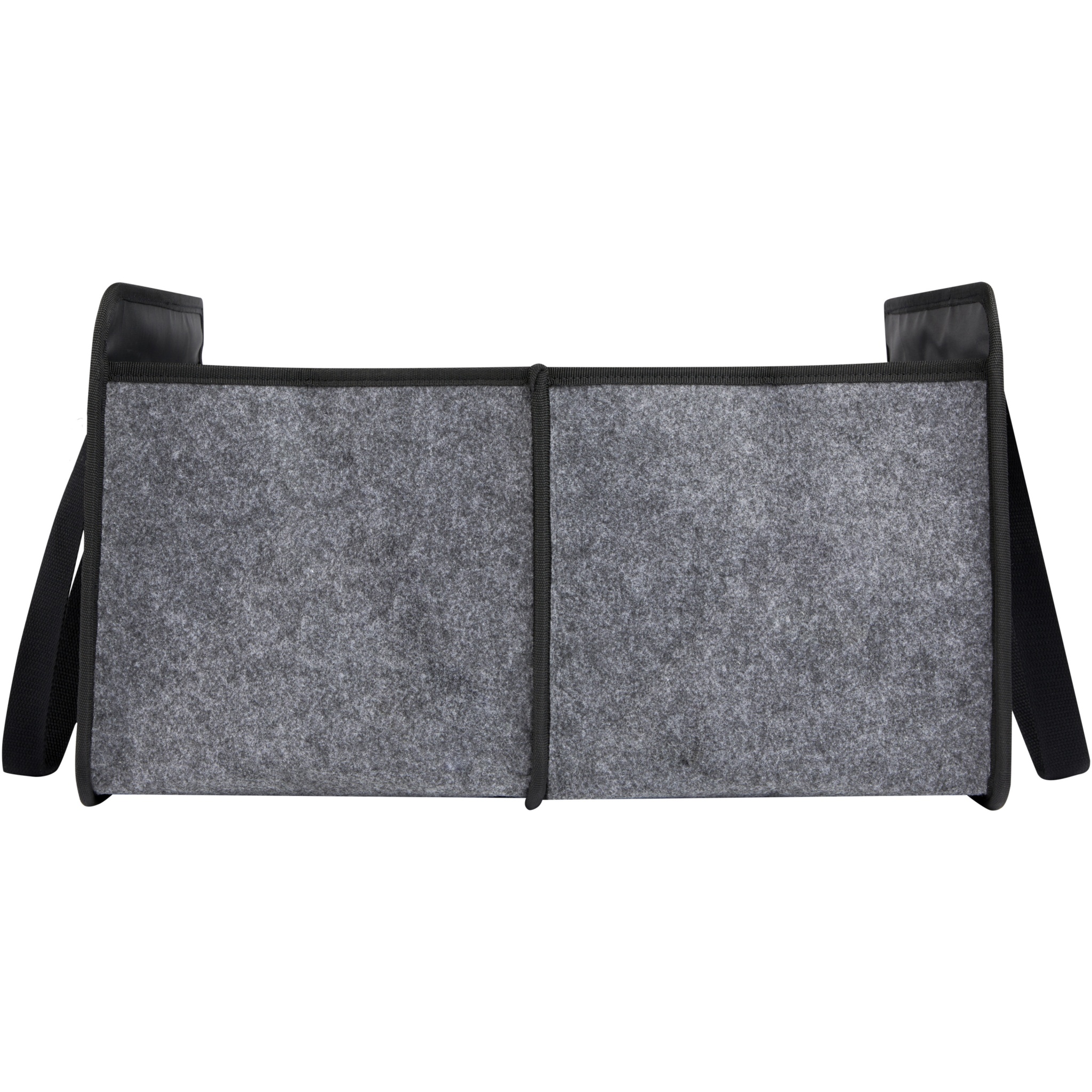 Pehmeästä ja kestävästä korkealaatuisesta GRS-sertifioidusta kierrätetystä huovasta valmistettu taitettava takakontin järjestelijä. Mukana 2 isoa lokeroa, joissa on vahvistetut pohjalevyt, etutasku, verkkotasku ja 2 pitkää kudottua puuvillakahvaa (30 x 2,5 cm). Ihanteellinen sähköauton latauskaapeleiden säilyttämiseen, ostosten kuljettamiseen tai tavaroiden pitämiseen järjestyksessä niin autossa kuin kotona. Taittuu paikoilleen vaivattomasti ja pysyy siististi taitettuna joustavan hihnan avulla. Syvyys suljettuna: 4,5 cm. Syvyys avattuna: 48 cm.