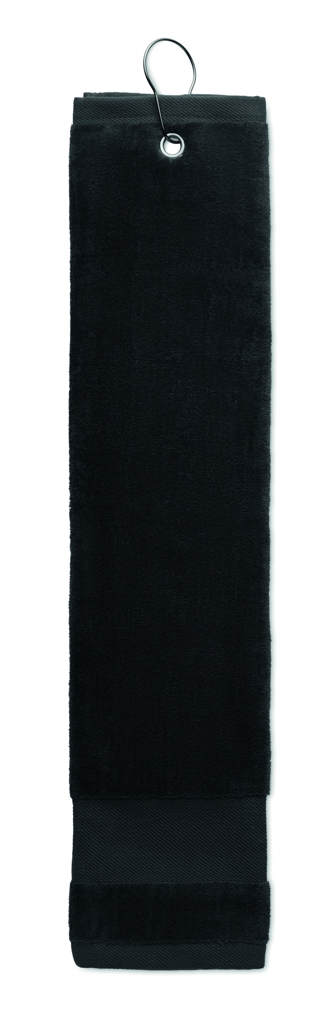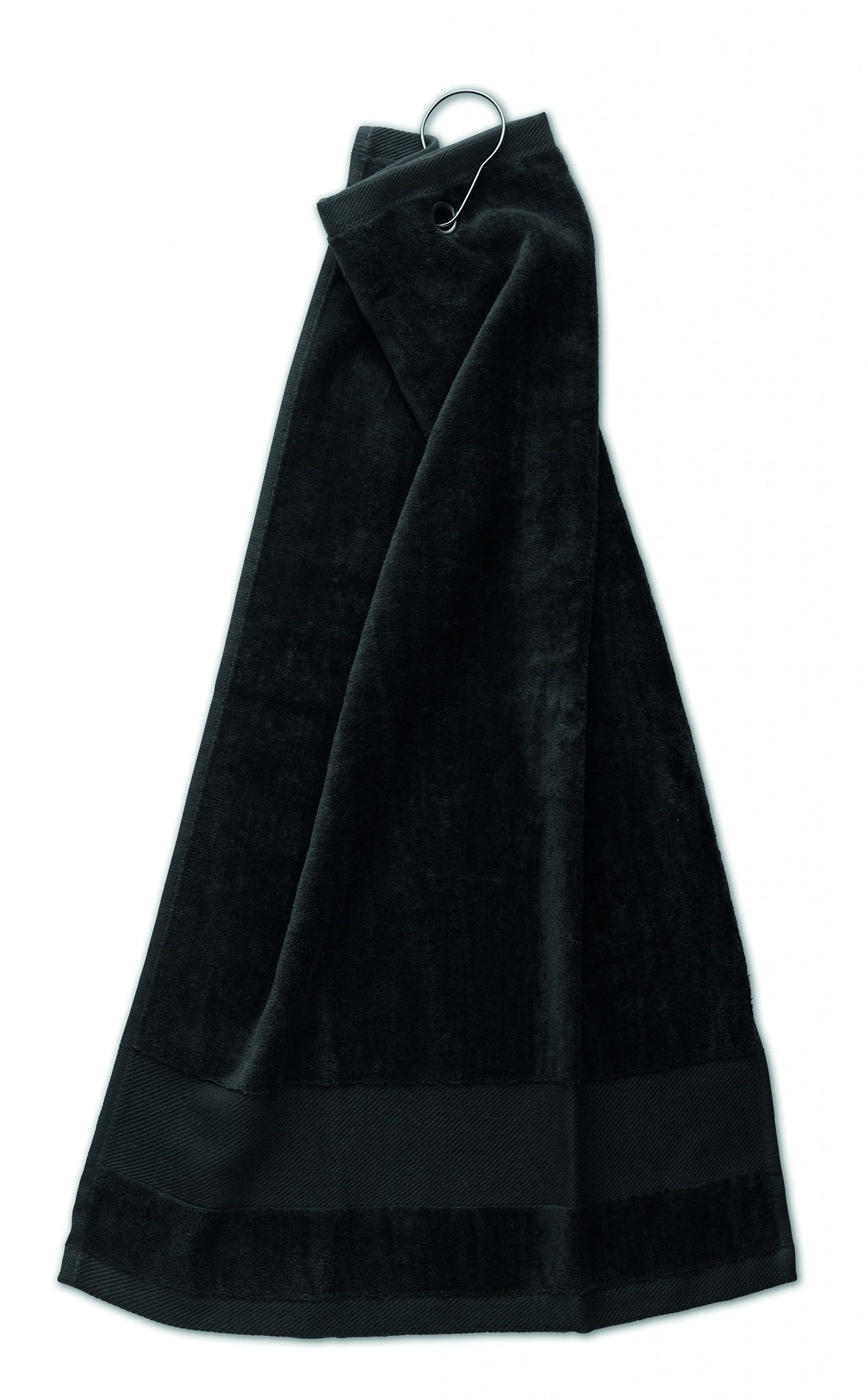 350 gr/m² puuvilla golf pyyhe kuparisella reiällä ja renkaalla pyyhkeen ripustamiseen. Pyyhkeen koko 40x60 cm.