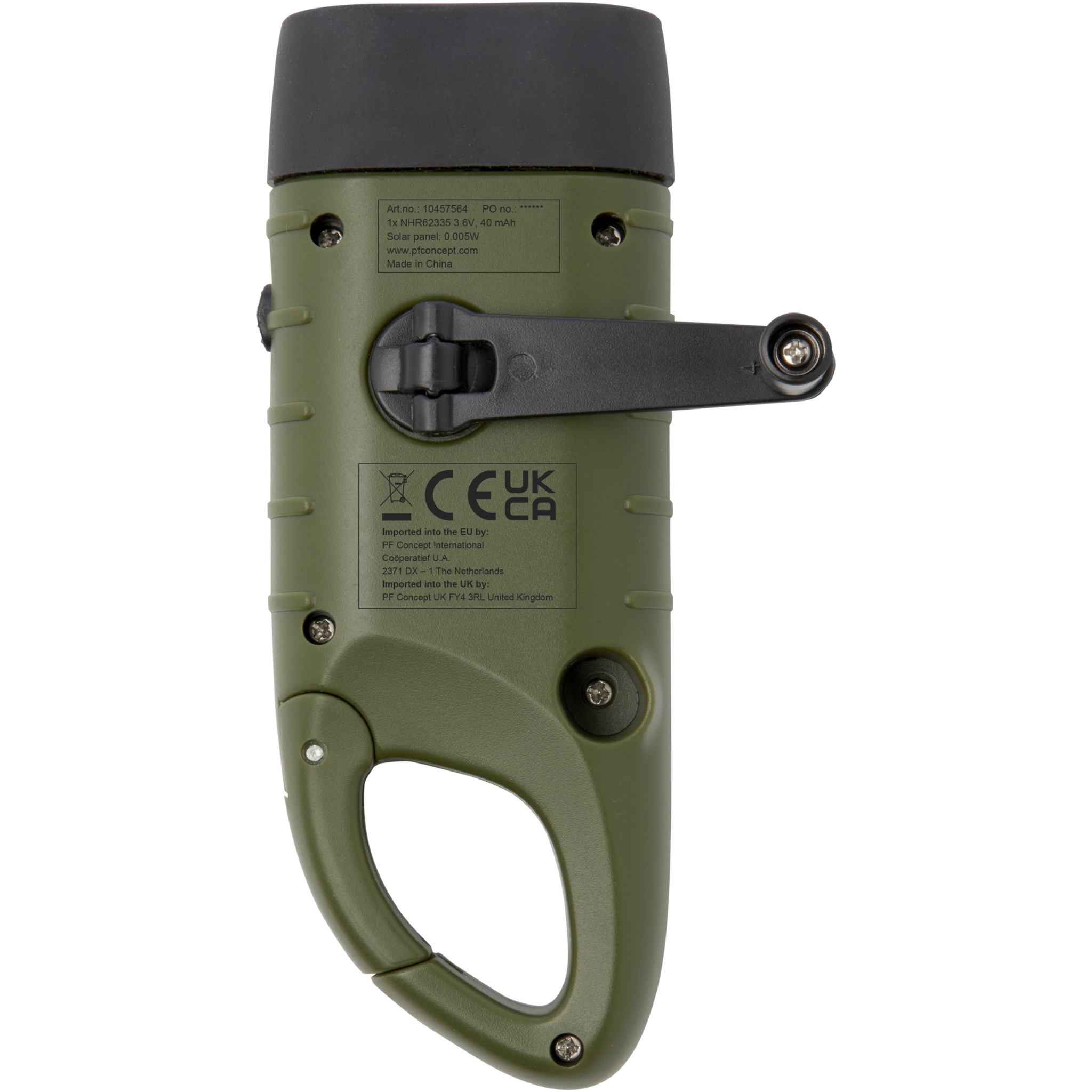Oletko kyllästynyt siihen, että virta loppuu, kun sitä eniten tarvitset? Heitä hyvästit kyseisille turhauttaville hetkille innovatiivisen ja vaivattoman Helios-valaisuratkaisumme avulla. Tässä kierrätetystä muovista valmistetussa dynamo-taskulampussa on sisäänrakennettu jousihaka, jonka avulla se on helppo kiinnittää reppuihin, vöihin tai varusteisiin, minkä vuoksi se on kätevä tarvike telttaretkille tai vaelluksille. Vain minuutin manuaalinen kampeaminen riittää jopa kahdeksaan minuuttiin valoa. Ja kun aurinko paistaa, aurinkopaneeli varmistaa, että valonlähde on aina valmis käytettäväksi. Mukana 3 LED-valoa, joiden kirkkaus on 10 000 mcd. Akkutyyppi: 40 mAh:n Ni-Mh, 3,6 V. Pakattu ympäristöystävällisistä materiaaleista valmistettuun STAC-lahjarasiaan.