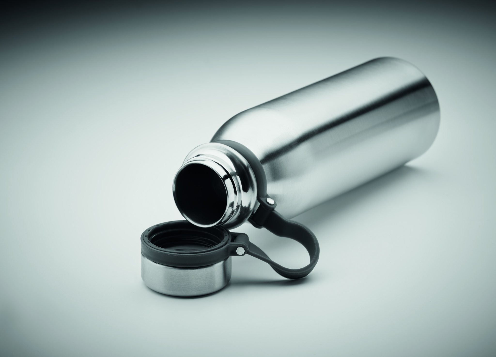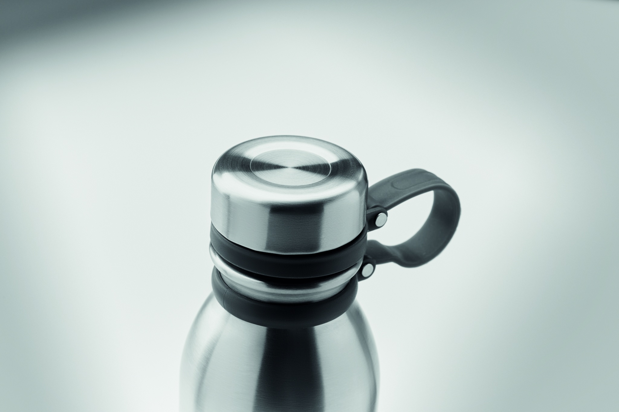 Kaksiseinäinen ruostumattomasta teräksestä valmistettu 600 ml juomapullo, tuote on BPA ja vuoto vapaa.