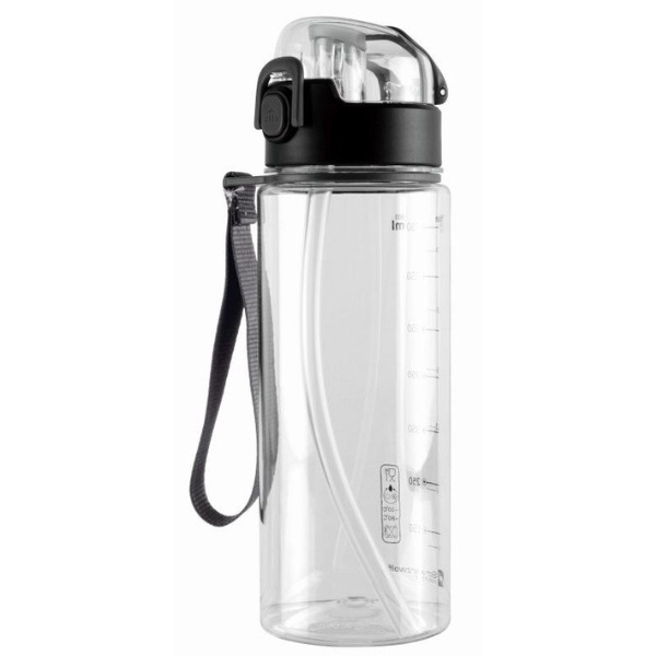 Urheilupullo läpinäkyvästä tritaanista, tilavuus 900 ml. Pullossa on musta rannehihna, eikä se sisällä BPA:ta. Se sopii kylmille ja lämpimille juomille -10°C - 80°C.
