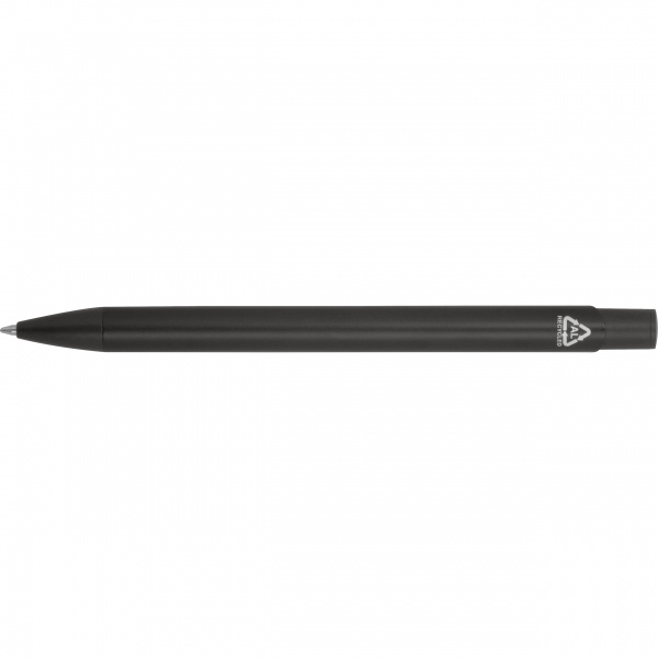 Kierrätetystä alumiinista valmistettu värillinen kuulakärkikynä, jossa on sinisellä kirjoitettava suurikapasiteettinen täyttöpakkaus. Logosi on kaiverrettu laserkaiverruksella klipsin alle.