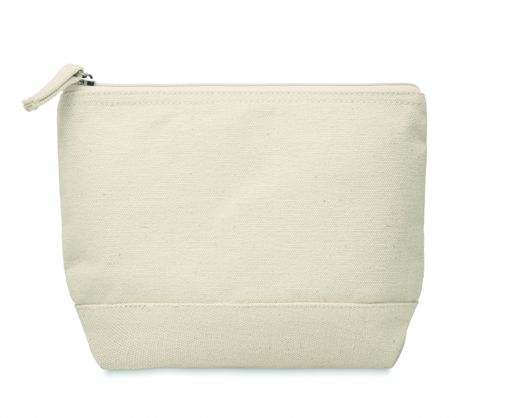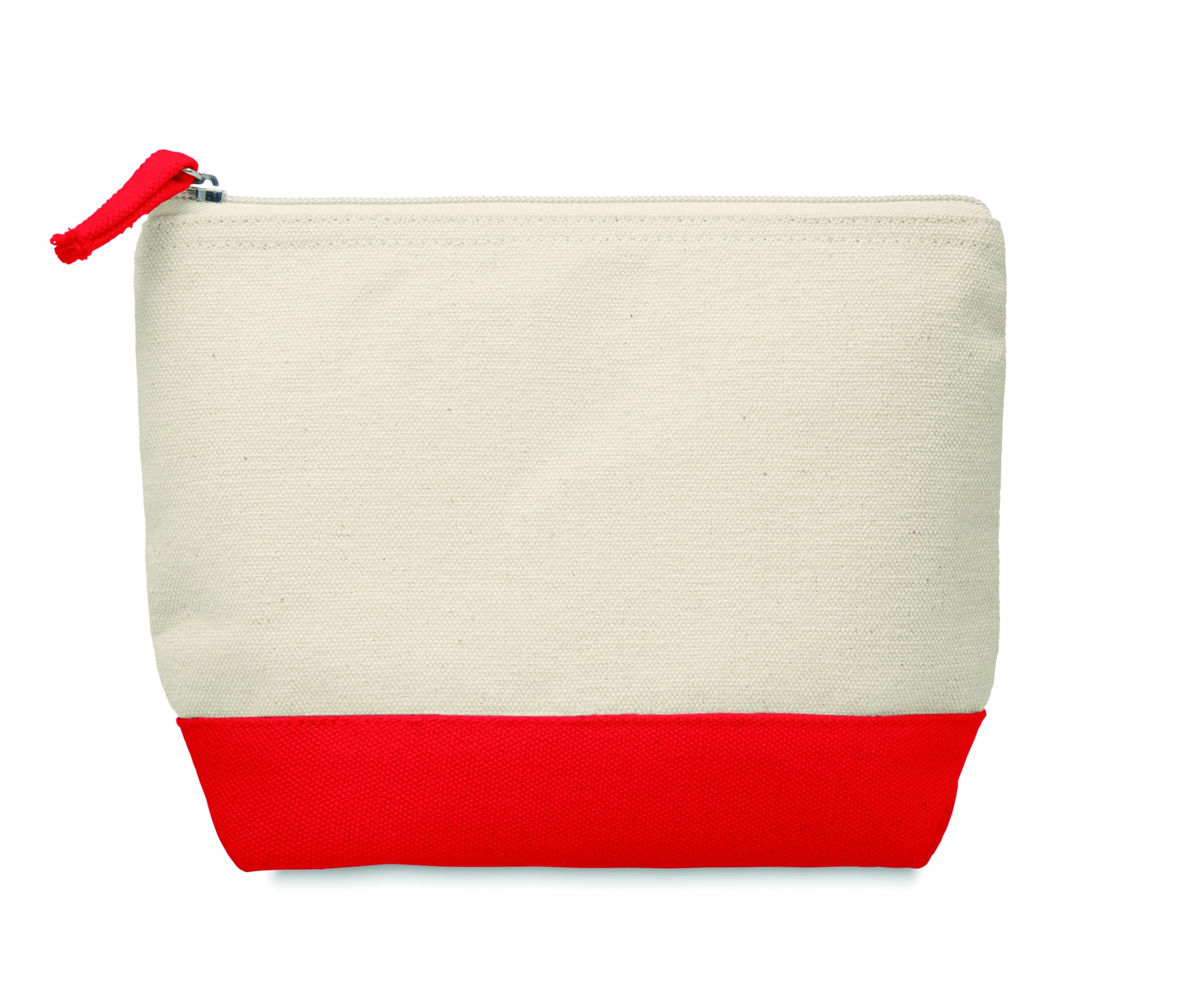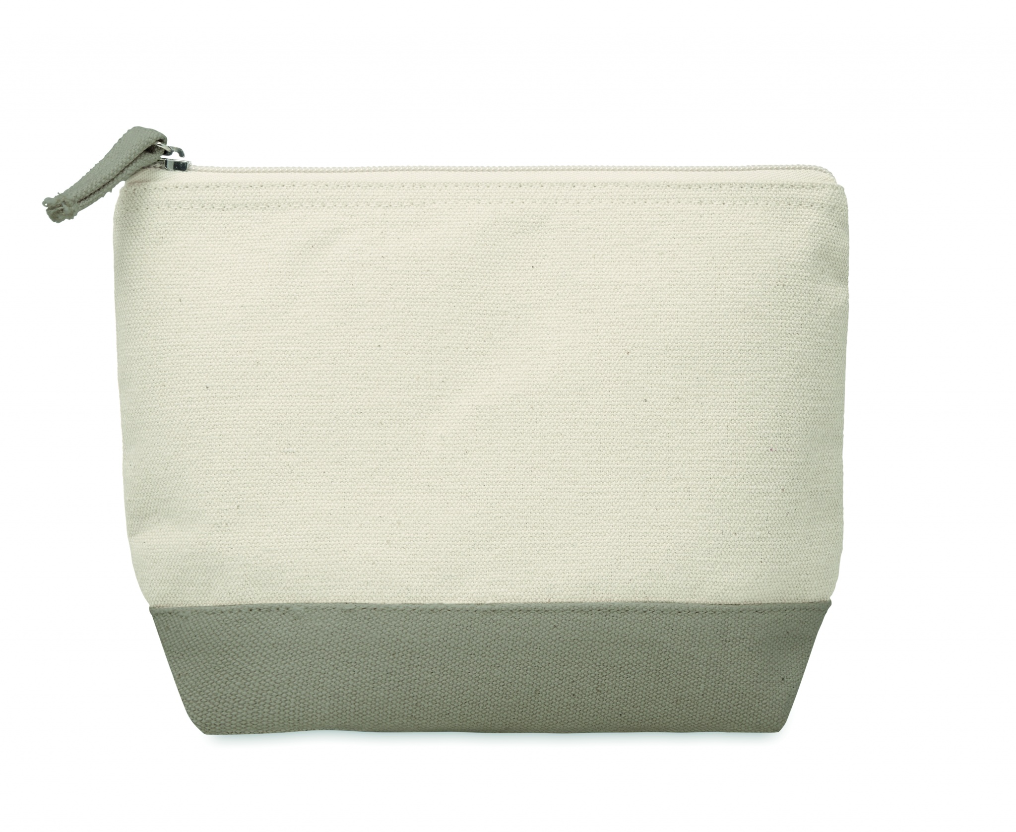 340 g/m² puuvilla kosmetiikkalaukku värillisellä pohjalla ja väriltään yhteensopivalla vetoketjulla.