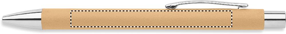 Kierrätyspaperista valmistettu painonappikuulakärkikynä, jossa on metallinen kärki ja klipsi. Sininen muste.