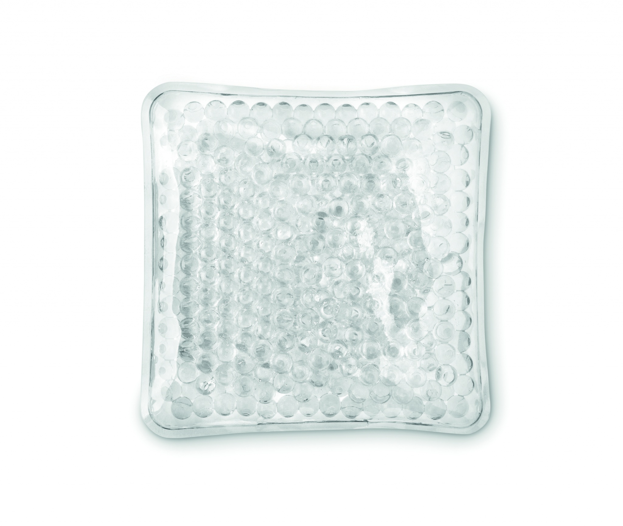Kuuma/ kylmä tyyny, tuotteen sisällä geeli helmiä, pakattuna läpinäkyvään PVC- muovi paukkaukseen.