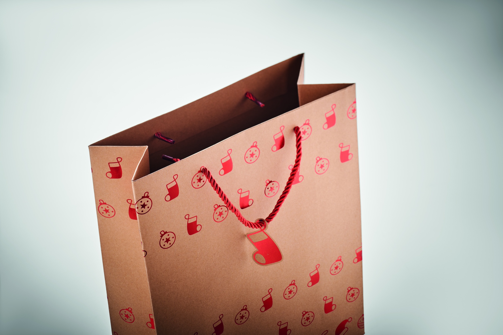 250 gr/m² jouluaiheinen lahjapussi, sisältää pakettikortin.