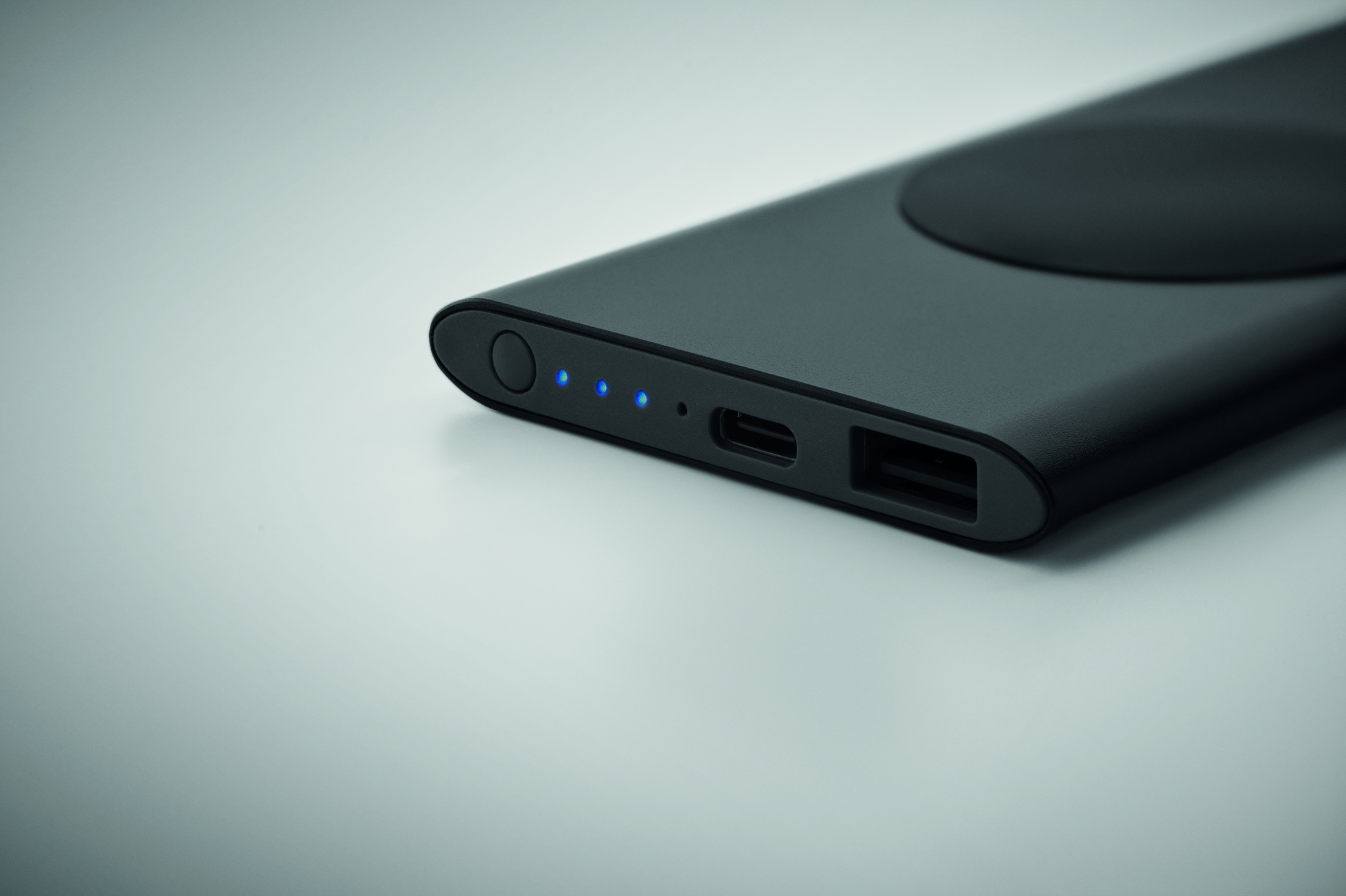Langaton 15W lataus 5000 mAh varavirtalähde valmistettu kierrätysalumiinista. Syöttö: Type-C. Lähtö: 1 x Type-C & 1 x Type-A. Lähtövirta DC5V/2A. Yhteensopiva uusimpien androidien, iPhone® 8, 8S ja X ja uudempien kanssa.