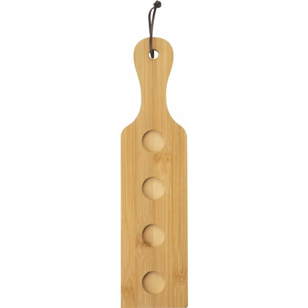 5-osainen haulilasisetti, jossa on 4 lasia, kukin 3cl ja puulevy käsihihnalla kuljetusta varten. Logosi kaiverretaan taululle.