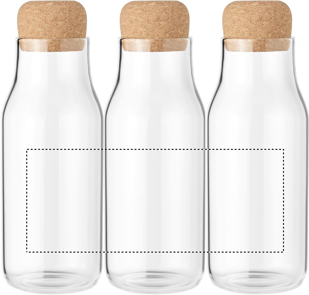 600 ml borosilikaattilasipullo korkista valmistetulla korkilla. Borosilikaattilasiin ei voi kaiverruttaa.
