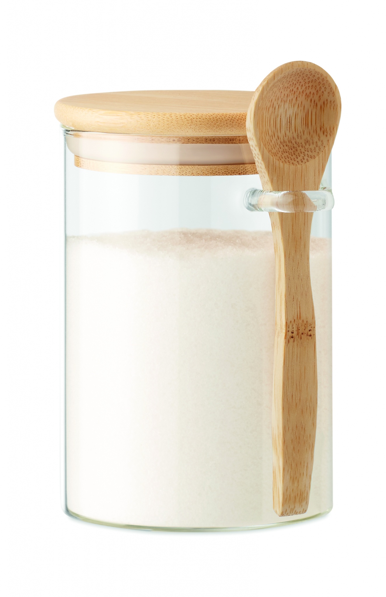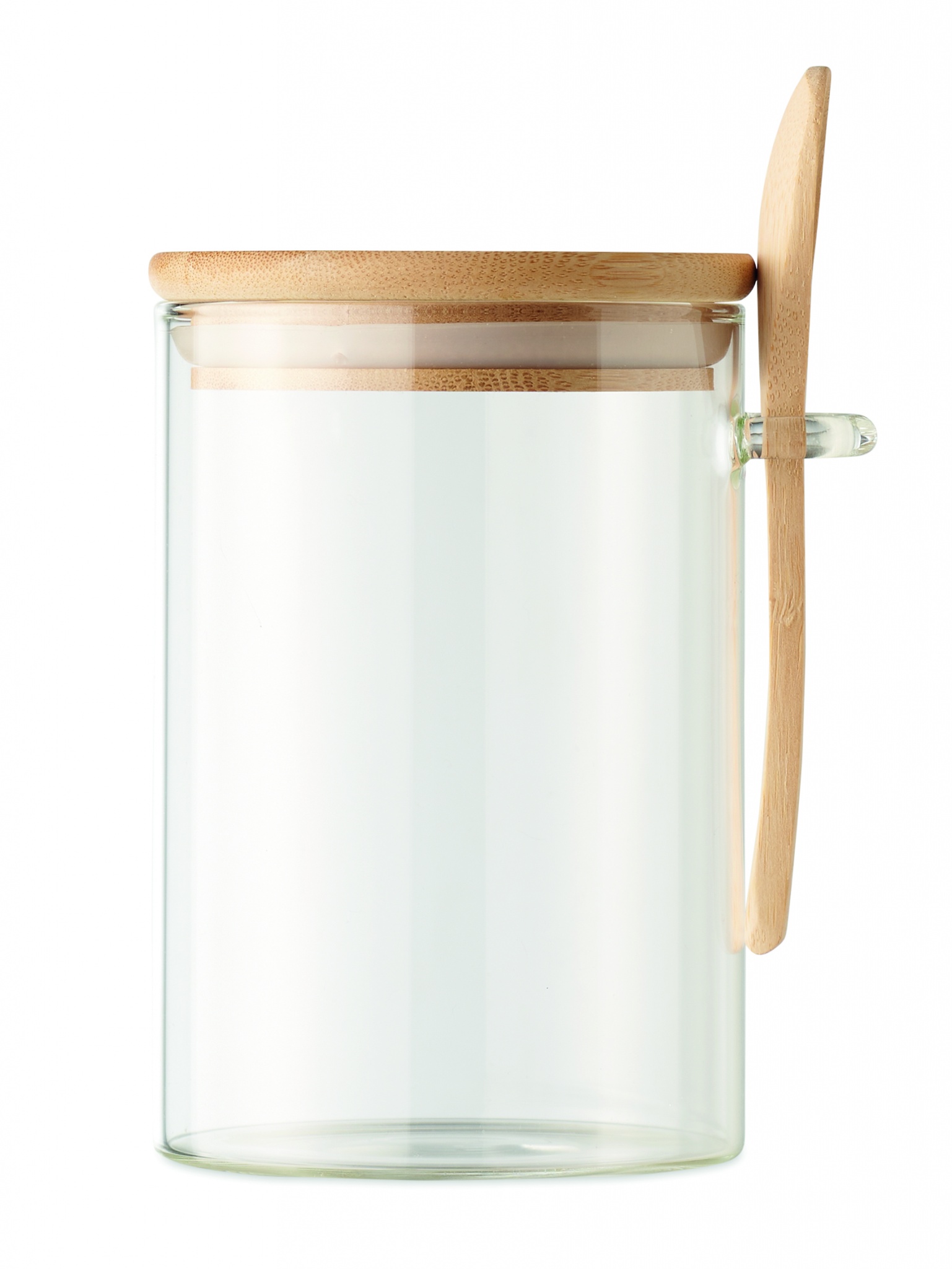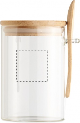 600 ml borosilikaattilasi purkki bambu kannella ja bambu lusikalla. Luonnollisen materiaalin (bambu) vuoksi, tuotteiden värissä/ koossa saattaa olla erinäisyyksiä ja tämä voi vaikuttaa painatuksen lopputulokseen.