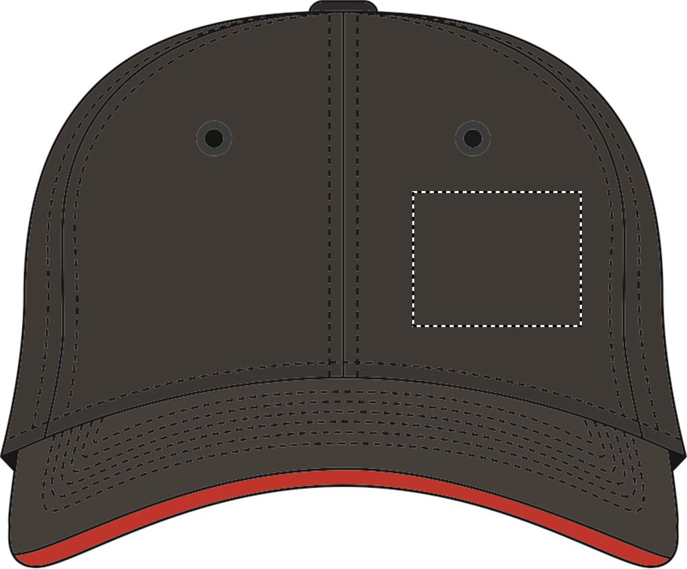 6-paneelinen lippalakki harjattua paksua puuvillaa, säädettävä metallinen solki ja läpivienti nauha. Sandwich-tehoste lipassa, koko 7 1/4