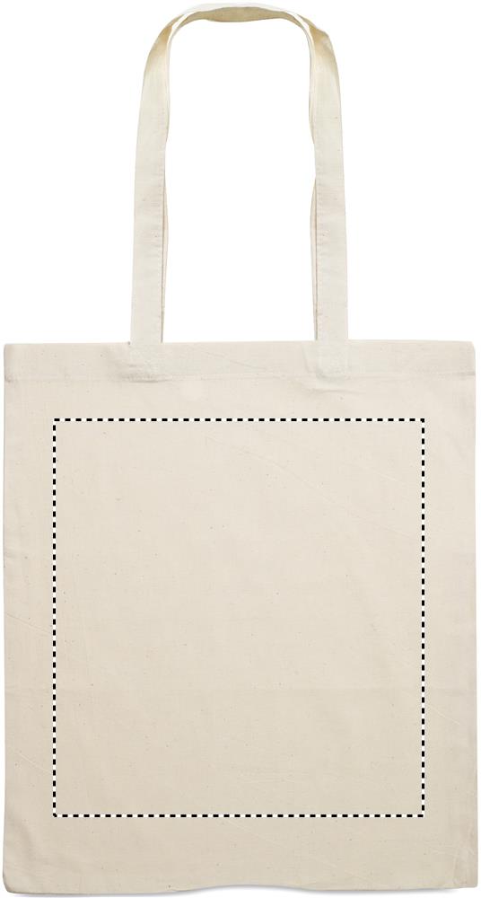 Ostoskassi pitkillä kahvoilla, materiaali luomupuuvillaa, 180 gr/m². Valmistettu EU:ssa