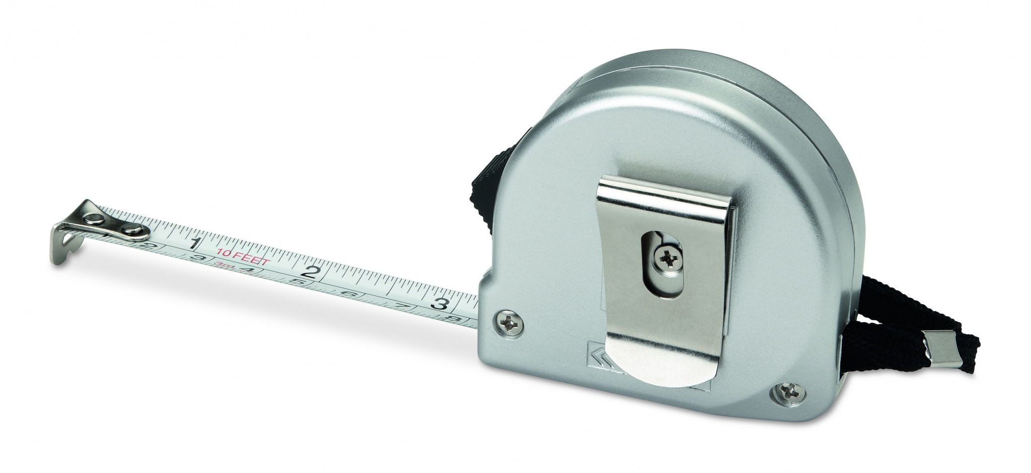 2 m ammattimainen mittanauha mattahopea ABS kuorella, sisältää rannehihnan ja kiiltävän metallisen vyökiinnikkeen.