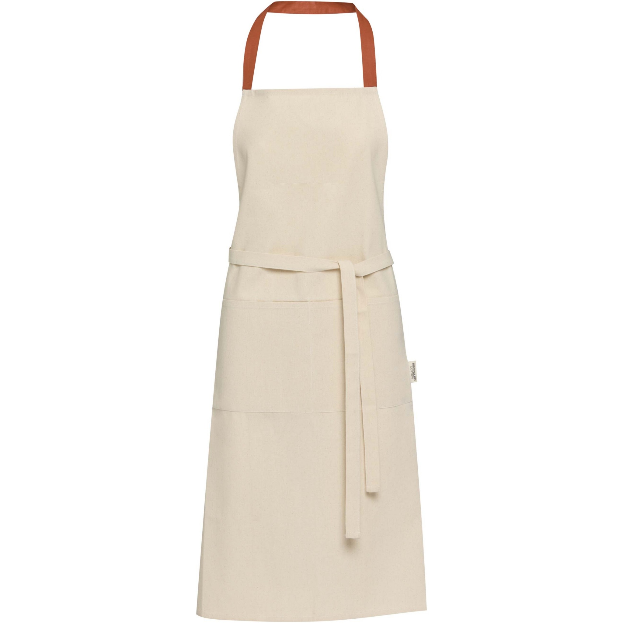Nia esiliina on valmistettu 100-prosenttisesti GRS-sertifioidusta 200 g/m²:n kierrätetystä puuvillasta. Esiliina on luonnollisen puuvillan värinen, siinä on kontrastivärinen niskalenkki ja se suojaa vaatteita ruoanlaiton aikana. Käytännöllisessä ja tyylikkäässä Nia esiliinassa on kaksi vierekkäistä taskua, joiden yhdistetty koko on 45 x 20 cm, sekä 1 metrin pituiset taakse sidottavat kiinnitysnauhat.