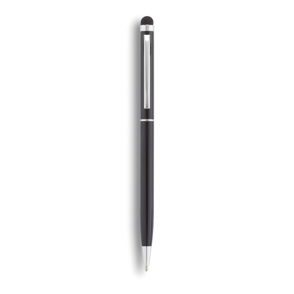 Alumiininen kuulakärkikynä osoitinkärjellä ja helppokäyttöisellä kääntömekanismilla.