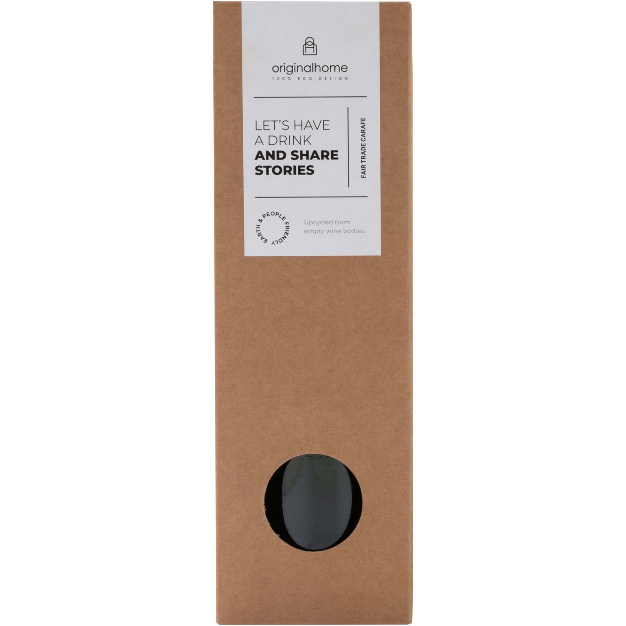 Käsintehty 750 ml:n vesikarahvi, joka on valmistettu uudistetuista viinipulloista Tansanian Sansibarilta. Viinipullot kerätään hotelleista, ravintoloista ja baareista, minkä jälkeen ne lajitellaan, puhdistetaan ja leikataan eri muotoisiksi ja kokoisiksi. Toimitetaan lahjapakkauksessa.