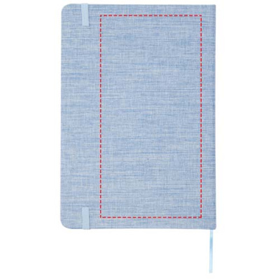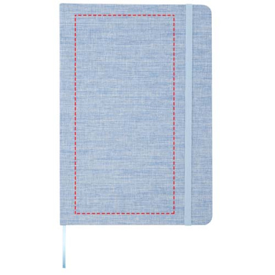 Kierrätetystä puuvillasta valmistettu kovakantinen A5-muistikirja, jossa on 80 viivoitettua arkkia 70 g/m²:n paperia. Kuminauhasuljin, nauha ja pyöristetyt kulmat.