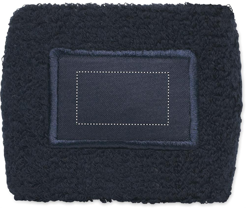 Puuvilla-polyesteristä (79% puuvillaa/13 % elastaania/8 % polyesteriä) valmistettu ranneke, jossa puuvillamerkki painatusta varten.