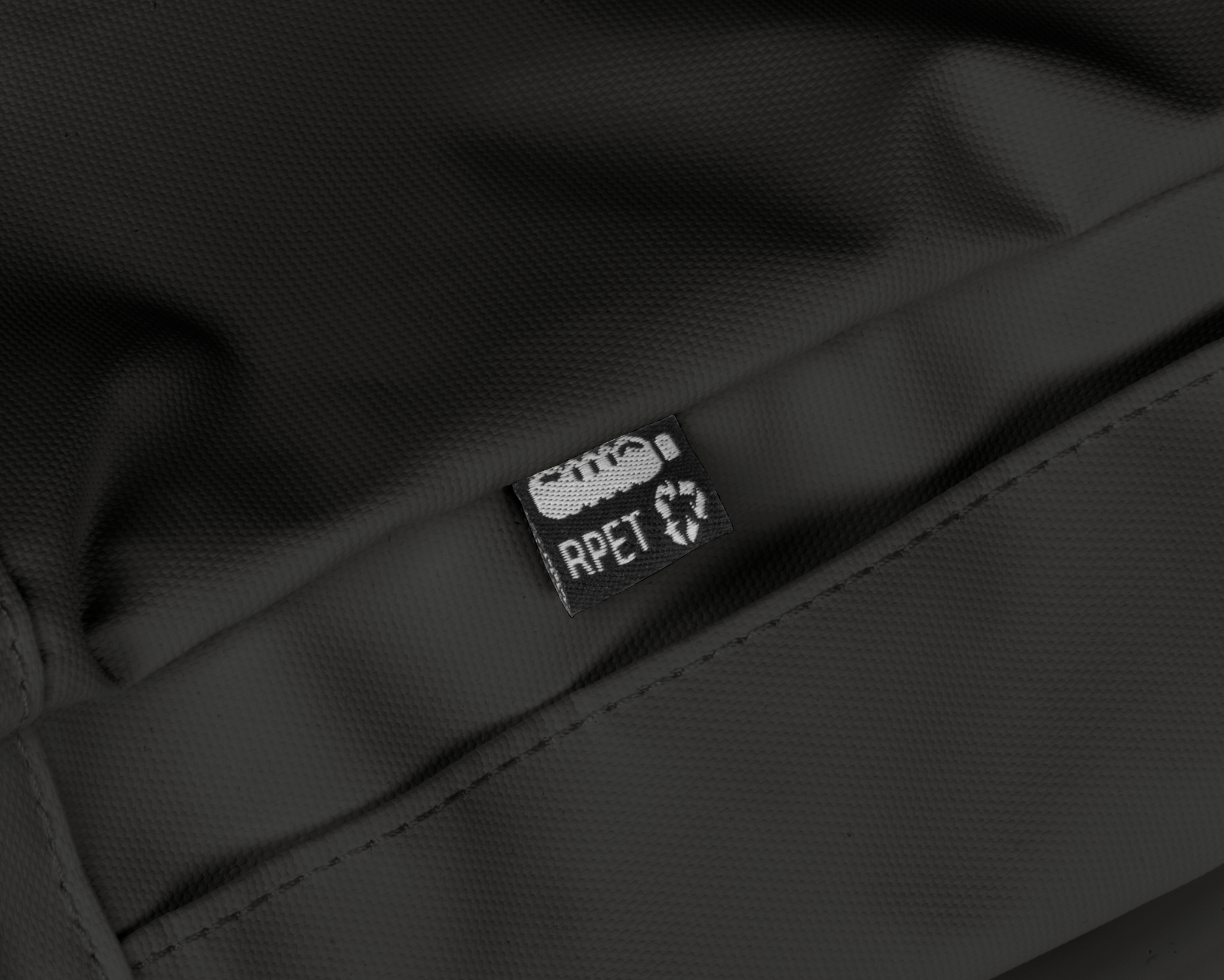 Kierrätetystä PET:stä valmistettu reppu. Suuren sisälokeron lisäksi kannettavan tietokoneen suojus, pehmustettu selkänoja, kantokahva, kaksi säädettävää pehmustettua olkahihnaa, vetoketjullinen etuosasto, säädettävä suljin, tarrakiinnitys päällä, siinä on myös kaksi sivutaskua ulkopuolella. Painamme logosi etuosan keskelle.