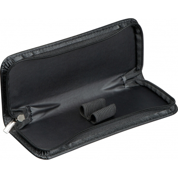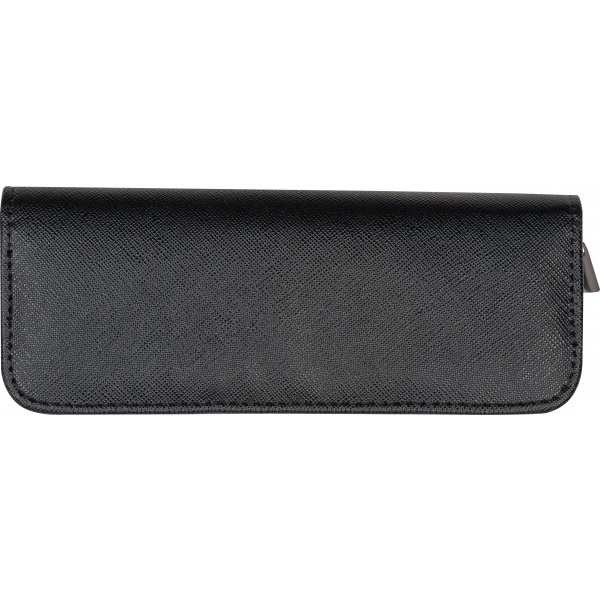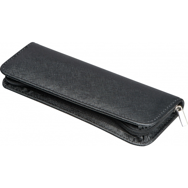 Kierrätetystä PU:sta valmistettu vetoketjullinen kynälaukku kahdelle kirjoitusvälineelle.