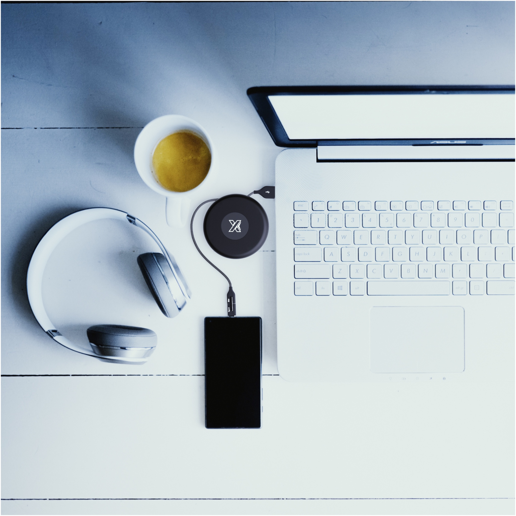 3-in-1 (Type-C, Android, iPhone) kelautuva latauskaapeli tiedonsiirrolla ja valaistuvalla logolla. Sopii käytettäväksi Apple CarPlay ja Android Auton kanssa. Kaapeli kelautuu silikoniseen koteloon, joka tekee tuotteesta täydellisen lisävarusteen liikkeellä ollessa. Pakkaus on valmistettu kierrätetystä paperista ja kierrätetystä muovista.
