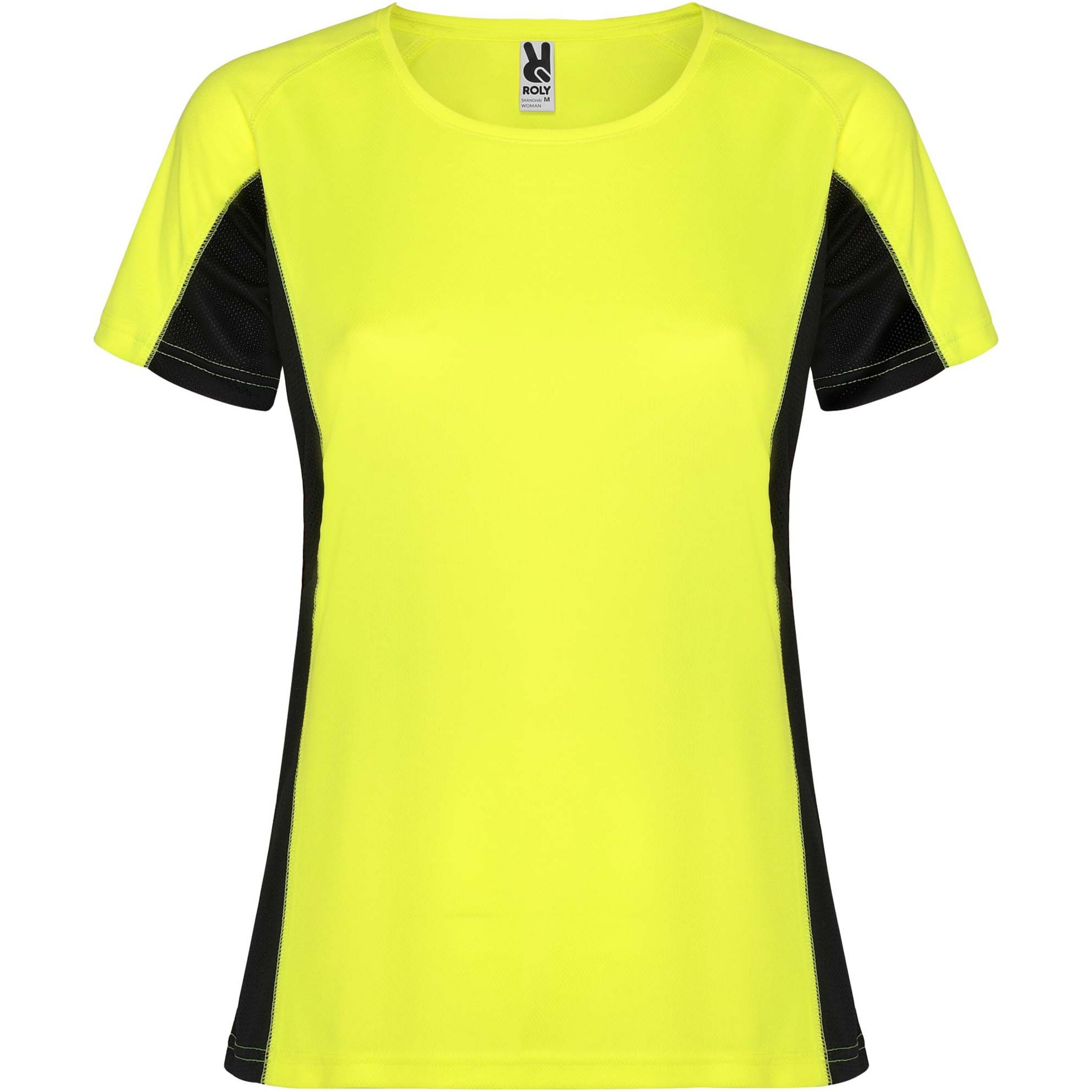 Shanghai naisten lyhythihainen urheilu-t-paita, Fluori keltainen / tasainen musta