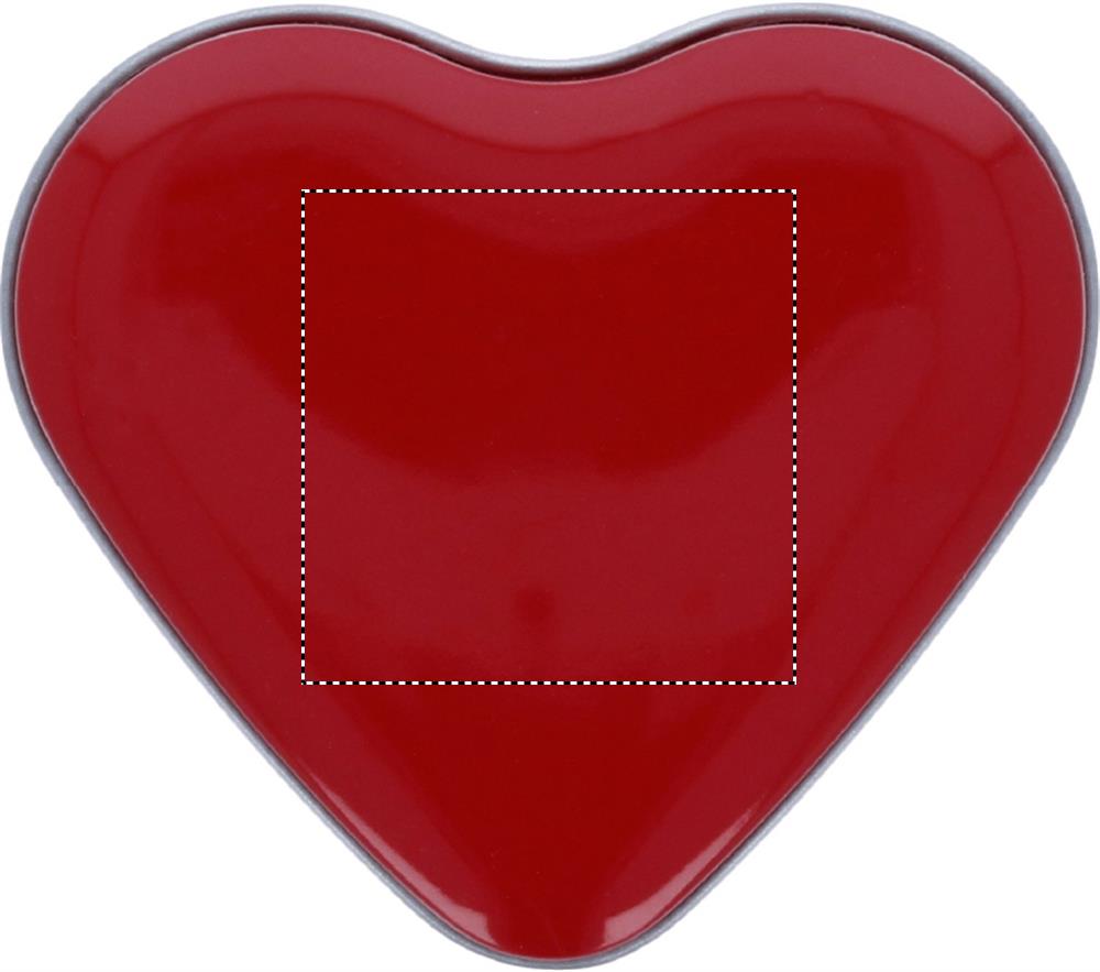 Sydän tinalaatikko, sisältää 24 grammaa sydämenmuotoisia karkkeja.