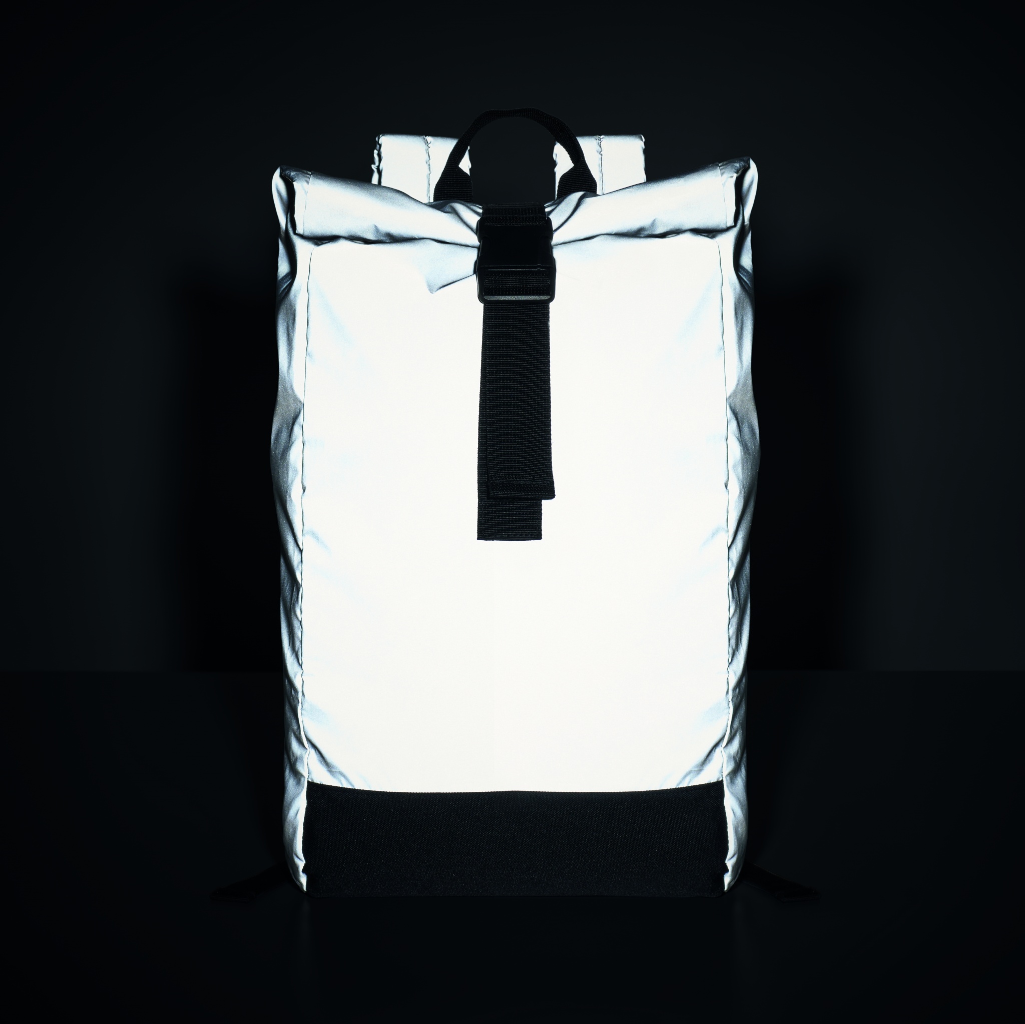 Tietokonereppu 15 tuuman tietokoneelle heijastavaa 190T polyesteriä. Pehmustettu selkäosa, hihnat ja pohja. Vetoketjullinen tasku edessä. Alaosa 600D-kierrätyspolyesteriä. Reppu suljetaan yläreunasta rullaamalla.