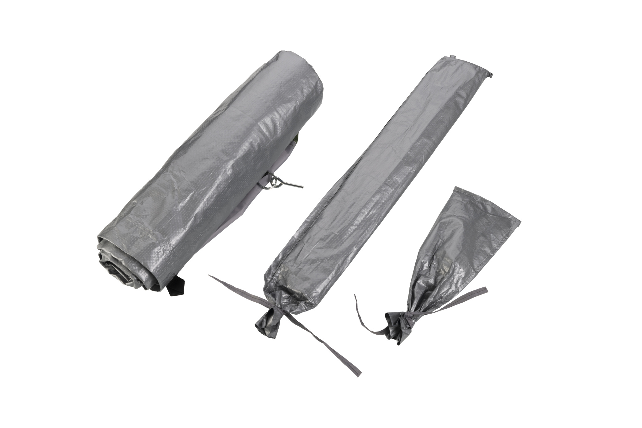 Ulkokatos 2 hengelle. Katto on loistava ranta- ja retkeilyvaruste, joka suojaa sinua auringolta ja tuulelta. Siinä on 300 mm vesipatsas ja UV-suodatin UV40+. Se on pakattu kiristysnyöripussiin, joka sisältää suojan, lasikuiturakenteen, 8 ruostumatonta terästappia ja 4 köyttä. Materiaalit: katos – 190 PA (polyamidi), lattia PE, rakenne – lasikuitupylväs