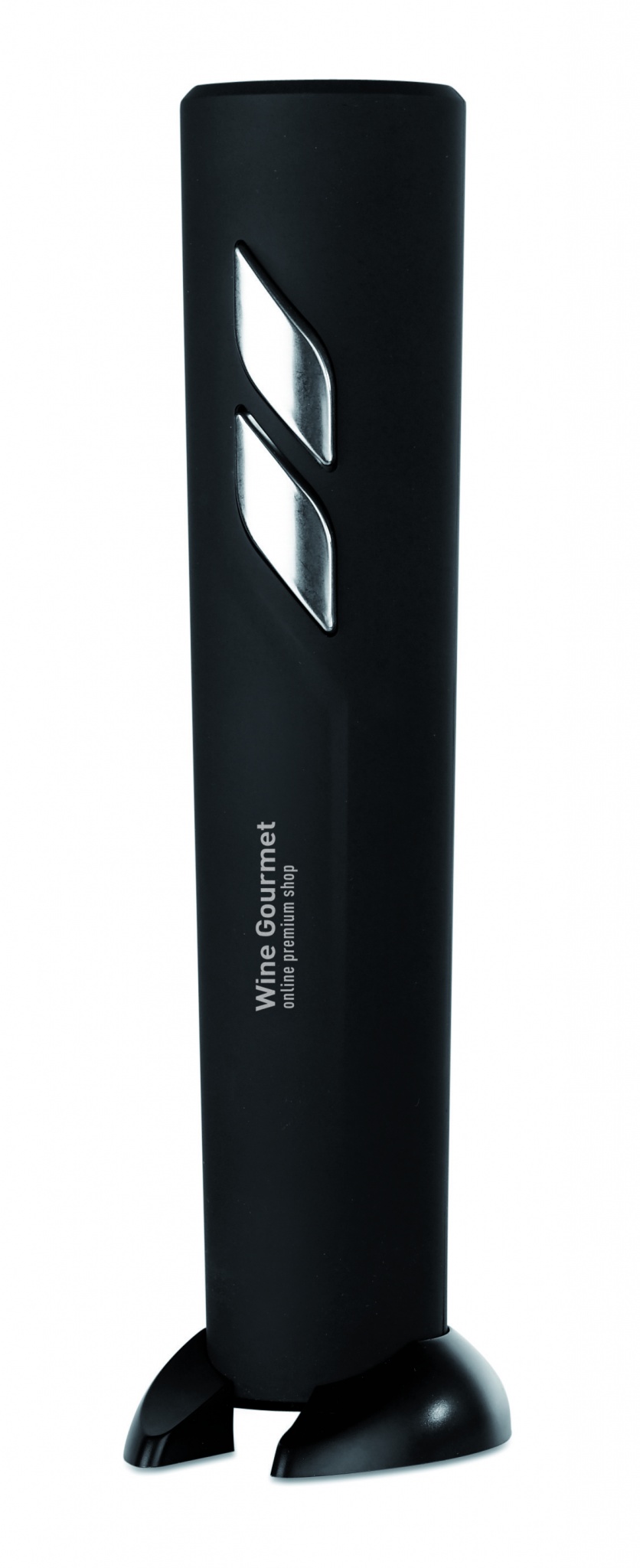 Sähköinen viinipullonavaaja ABS- muovi kotelolla, musta mattapintainen viimeistely. Sisältää folio leikkurin integroituna jalustaan, patterit eivät sisälly toimitukseen.