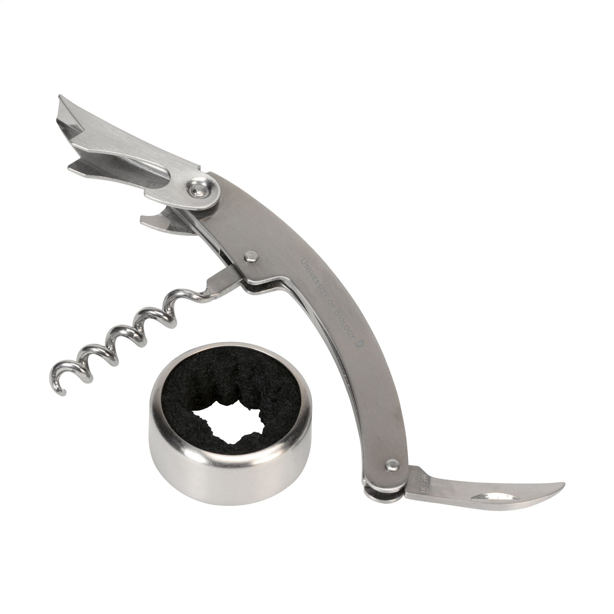 2-osainen viinilahjasetti: mattateräksinen tarjoilijaystävä ja tippakerääjä. Tuotteet toimitetaan sarjana, jokainen sarja erikseen pakattuna.