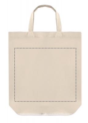 Saliekams iepirkumu maisiņš no kokvilnas ar īsiem rokturiem. 100 gr/m². Piegādāts nesalocītā veidā.